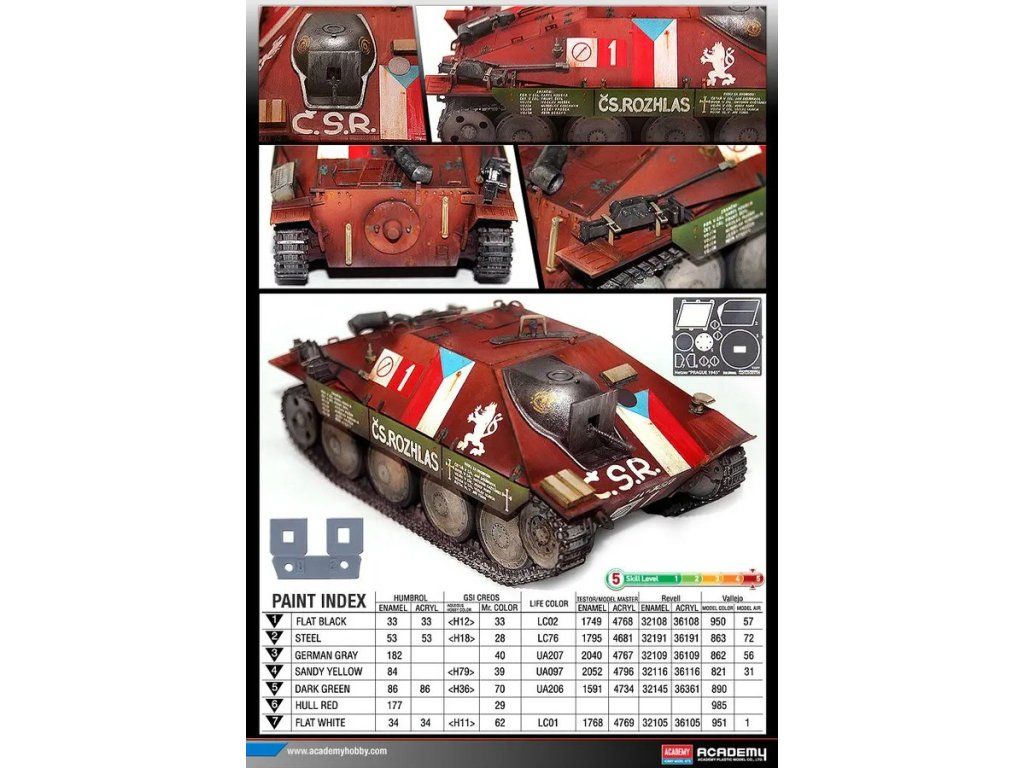 Stavebnice plastikového modelu německého stíhače tanků používaného během druhé světové války. Verze modelu z Pražského povstání, které se odehrálo v květnu 1945. Povstalci se zmocnili několika nedokončených kusů, které byly vyráběny v pražských závodech a improvizovaně je upravili a použili v bojích.