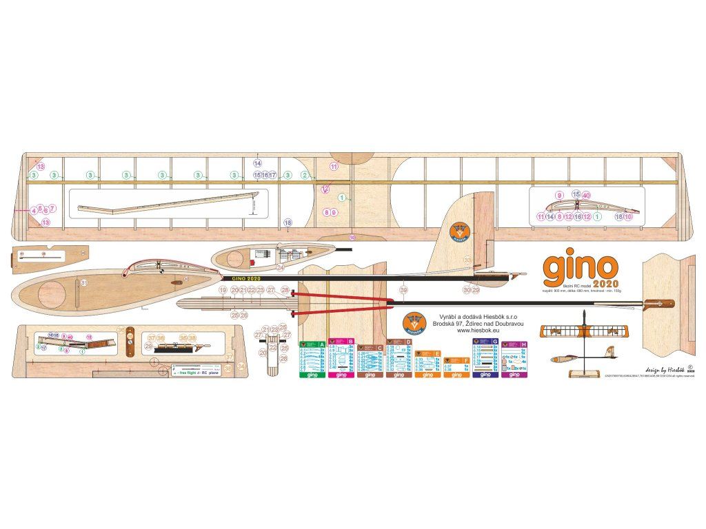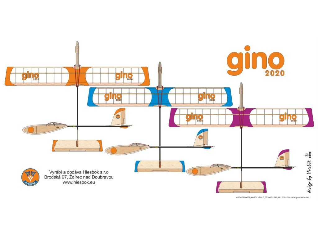 Stavebnice balzového modelu kluzáku s možností úpravy na RC. Vhodné pro pokročilé modeláře. Gino je klasický školní kluzák kategorie A3.Stavebnice obsahuje žebra křídla z topolové překližky, broušenou náběžnou a odtokovou hranu křídla. Zadní část trupu je vyrobena z uhlíkové trubky. Souprava je vhodná pro výuku potahování modelů křídel, teorie a praxe související s montáží RC modelů, modelářských soutěží kategorie A3 a výcviku létání s RC modely.