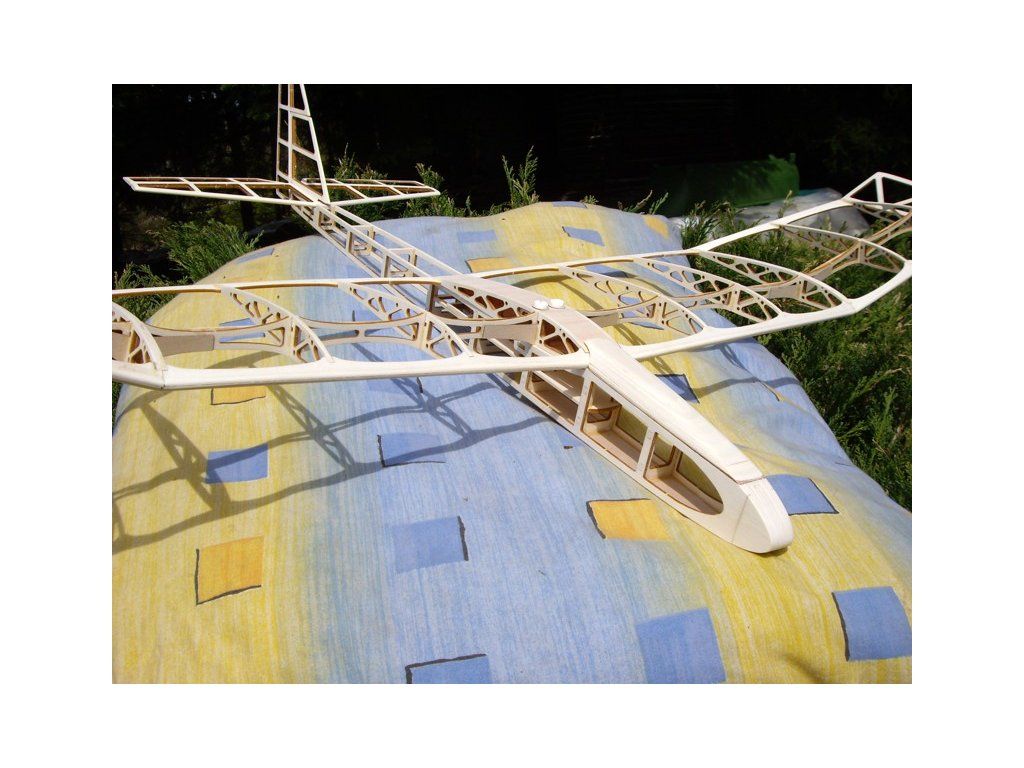 Stavebnice balzového modelu kluzáku s možností úpravy na RC. Vhodné pro pokročilé modeláře. Balení obsahuje všechny potřebné díly vyřezávané laserem, bowdeny, páky, panty a barevný plán.