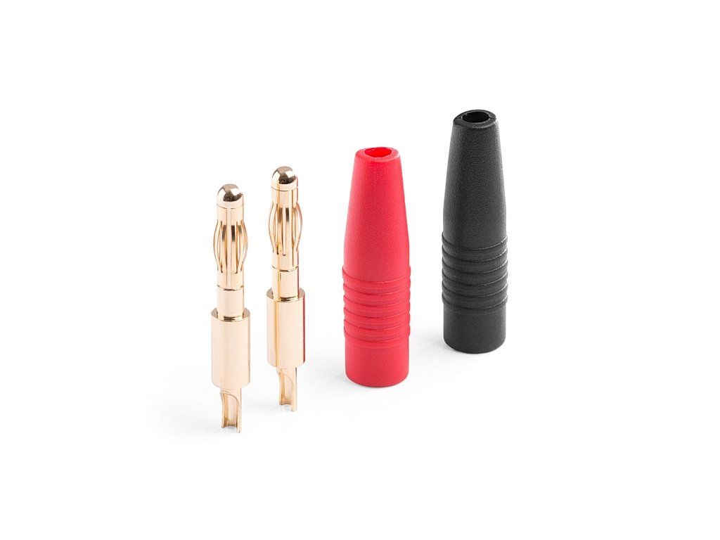 Zlatené konektory s priemerom 4mm často používané napríklad pri výrobe napájacích, alebo nabíjacích silových káblov.