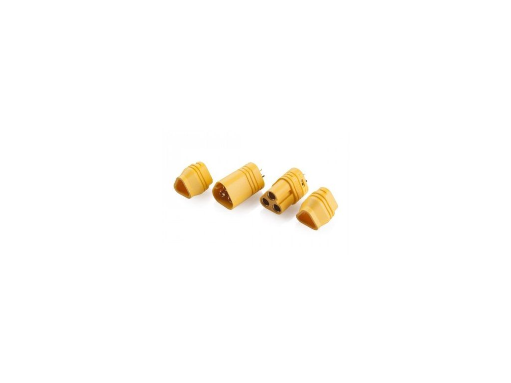 Silové konektory vhodné pre rýchle a pohodlné spojenie trojice káblov striedavého elektromotora s ESC regulátorom. Konektory sú vybavené odoberateľnými krytkami spájkovaných spojov káblov.