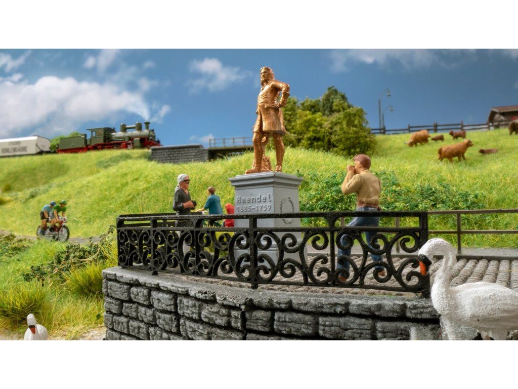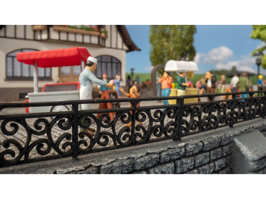 Kované zábradlí určené pro zabudování do diorámu nebo modelové krajinky.