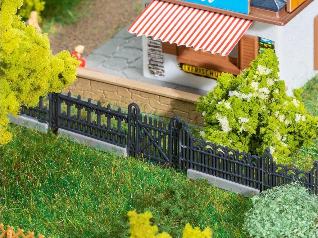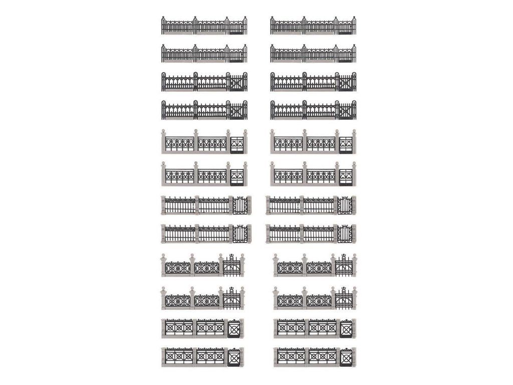 Stavebnice plastového modelu ozdobného oplocení vhodná k domečkům do diorámy nebo vláčkové krajinky.