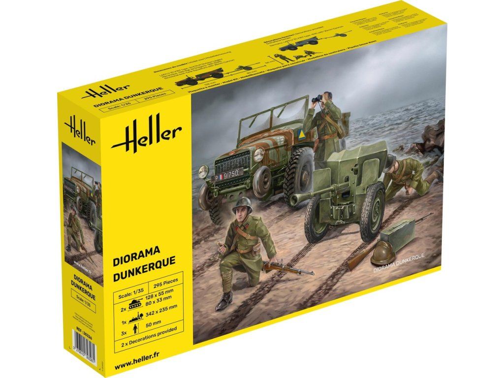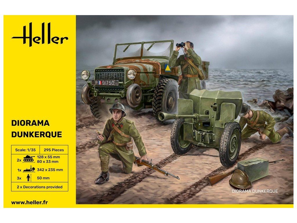 Stavebnice plastového modelu diorámy zobrazující boje o francouzské městečko Dunkerque z druhé poloviny 2. světové války. Stavebnice obsahuje díly pro stavbu francouzského terénního vojenského vozu Laffly, proti tankového děla a 50 figurek francouzských vojáků. Obsahem balení je i podložka.