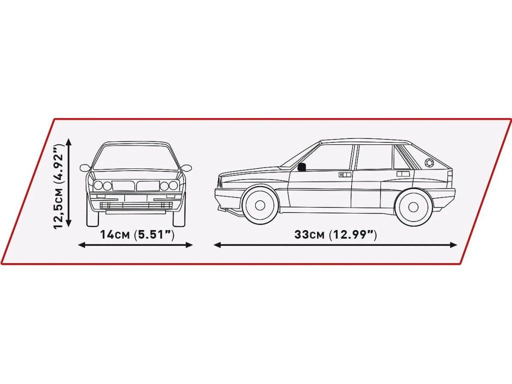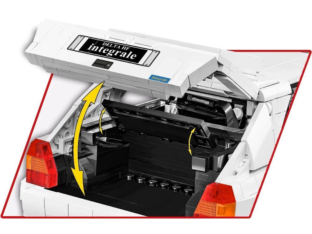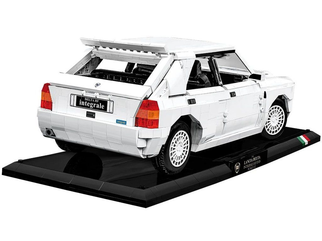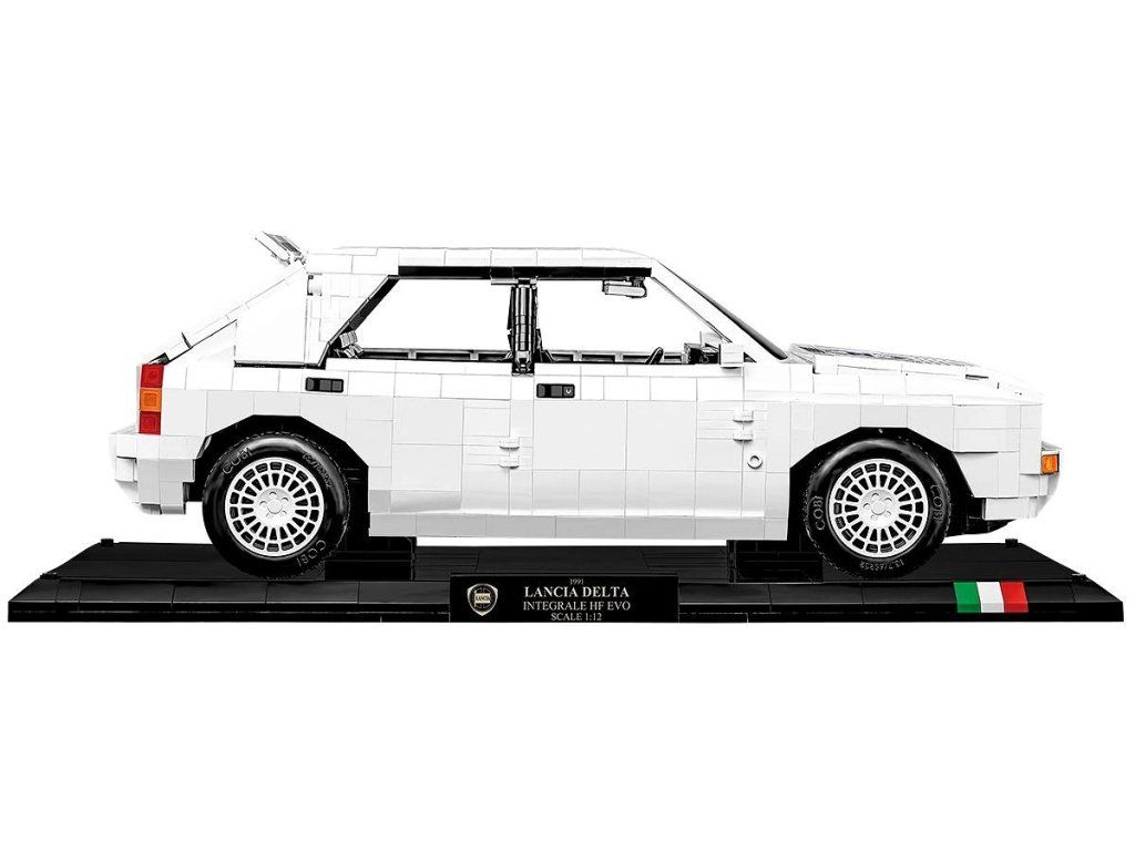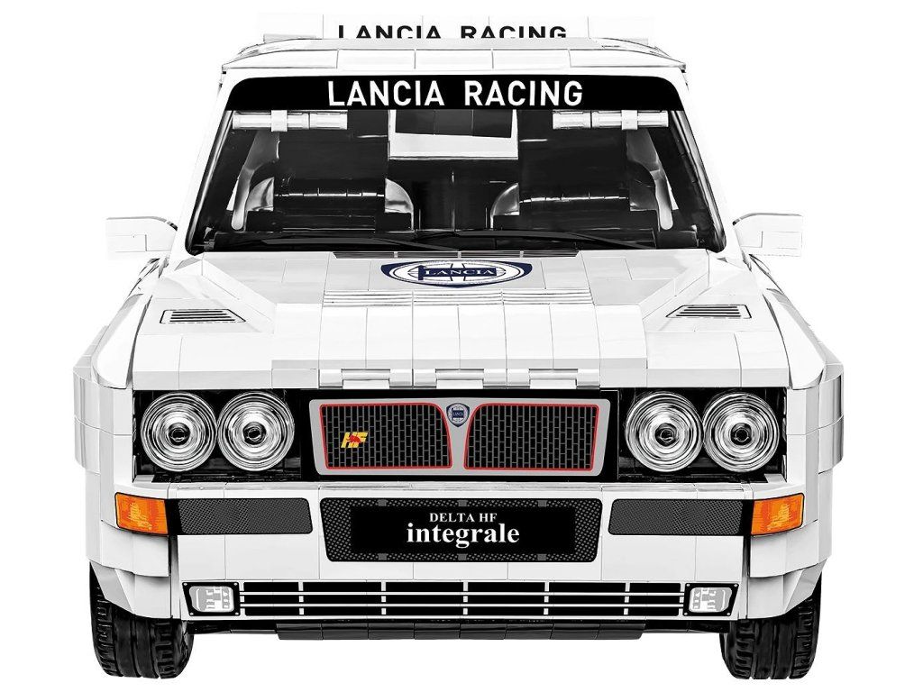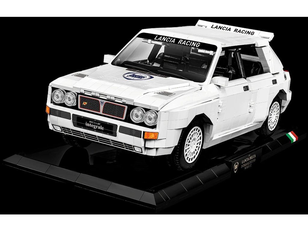 Stavebnice modelu z kostek závodního auta Lancia Delta HF Integrale EVO. Auto je v závodních barvách Lancia.