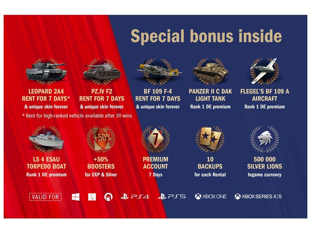 - Zapůjčení tanku Leopard 2A4 na 7 dní (+ unikátní skin navždy) (Po 30 výhrách)