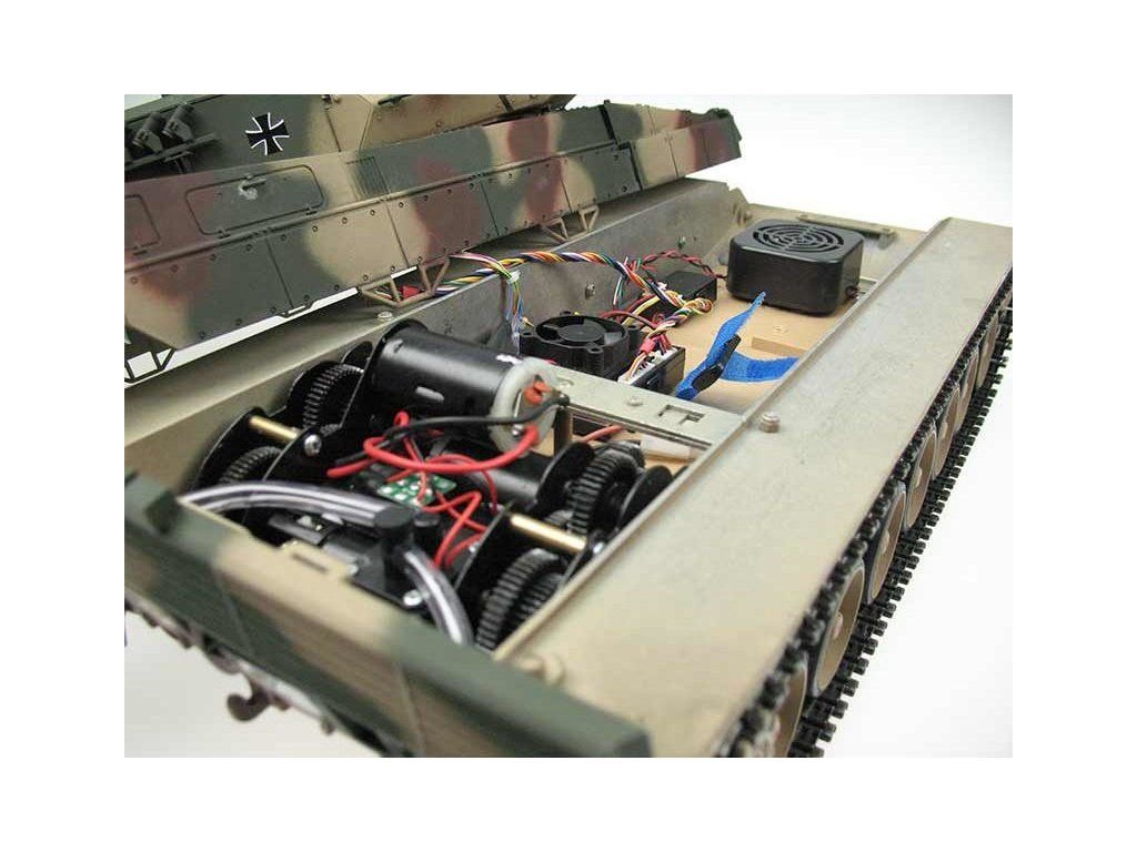 RC model moderního německého tanku s elektrickým pohonem simuluje většinu funkcí skutečného tanku. Model je sestaven a nabarven, drobné detaily jsou dodány v krabičce, modelář si je doplňuje na povrch modelu sám. Je vybaven realistickým podvozkem s funkčními pásy, hnacími, pojezdovými a napínacími koly, které umožňují jízdu dopředu, dozadu a zatáčení. Převodovky jsou vybaveny motory velikosti 380. Otáčení věže je v rozsahu až 360 stupňů, náměr kanónu (spouštění a zvedání) je ovládán cyklicky podržením levé páky vysílače. Model je vybaven zvukovým modulem imitujícím zvuk motoru, zvuky střelby z kulometu a kanónu. Instalován je také generátor kouře. RC souprava pracující v pásmu 2,4 GHz umožňuje jezdit více modelům bez omezení s hledáním volného kanálu.
