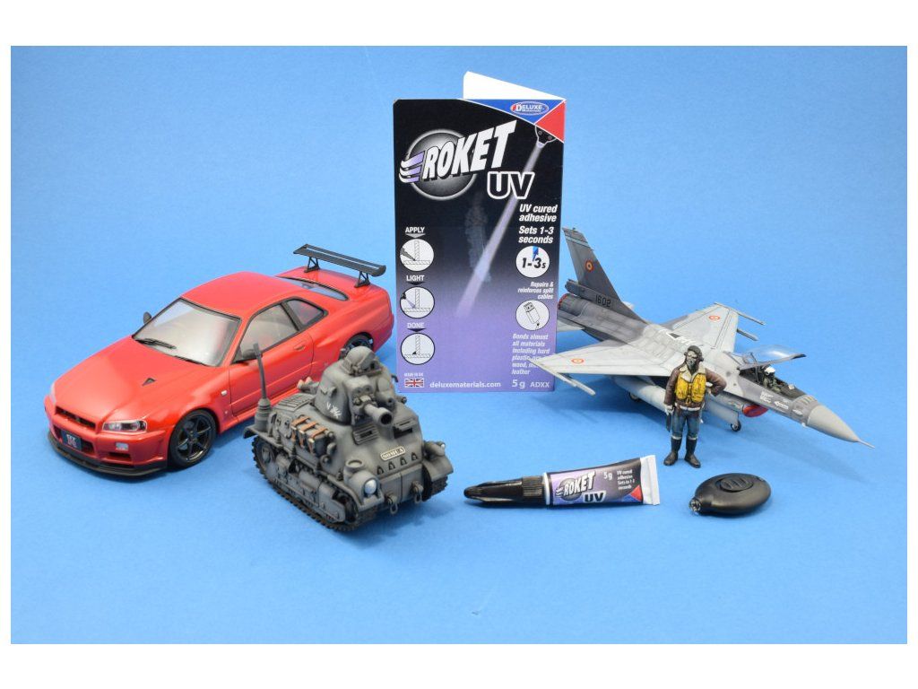 Lepidlo Roket UV od Deluxe Materials patrí medzi lepidlá, ktoré sa vytvrdzujú UV žiarením. Roket UV vytvára úplne číry spoj, lepí tvrdé plasty, kompozitné materiály, drevo a kovy.