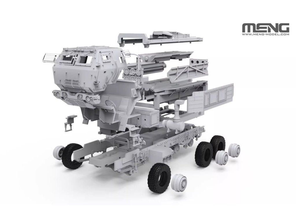 Stavebnice plastikového modelu moderního amerického mobilního raketového systému v současnosti sloužícího na Ukrajině.