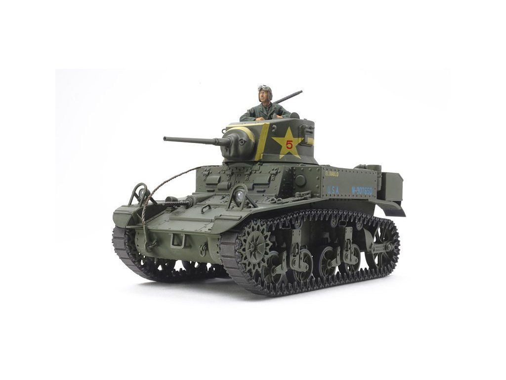 Stavebnice plastikového modelu amerického lehkého tanku ze 2. světové války.