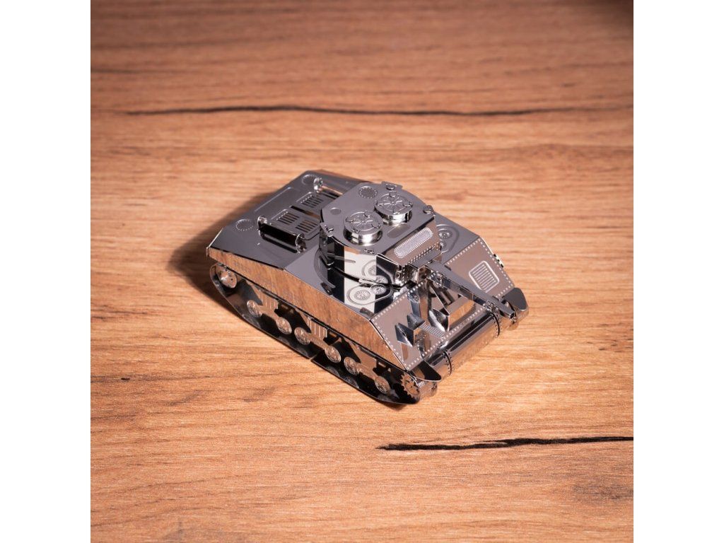 Stavebnice modelu z kovu. Vyrobeno z kvalitního leštěného ocelového plechu laserovým vypalováním a přesným obráběním. Vhodné pro mírně pokročilé a starší děti.