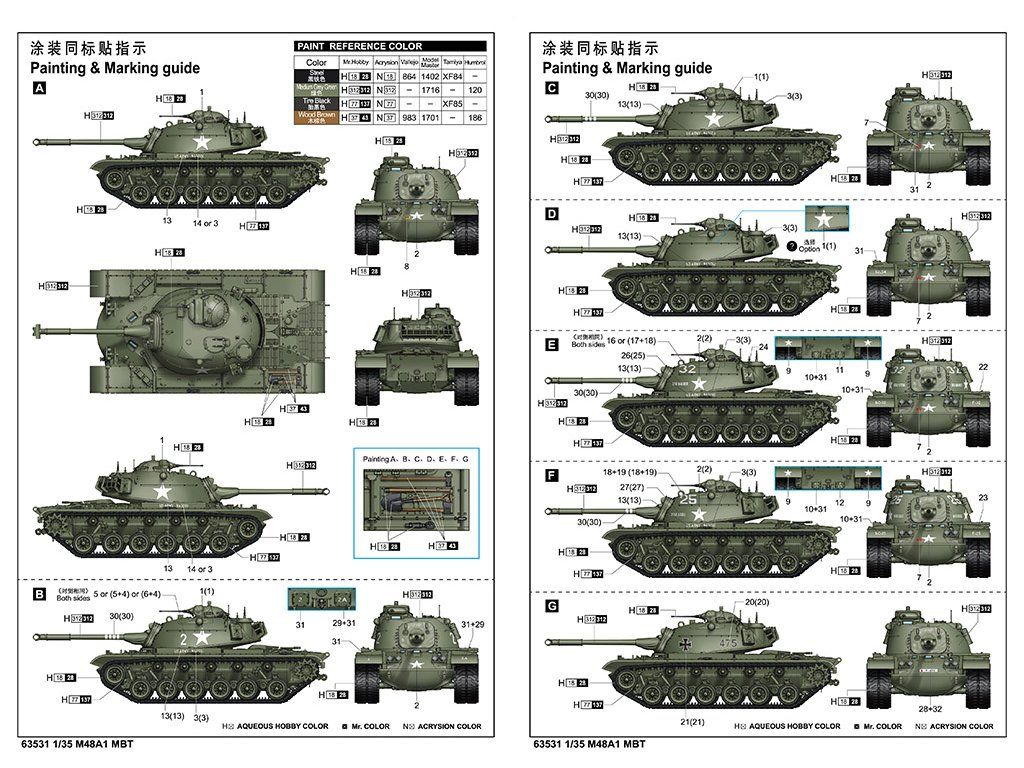 Používajte špeciálne modelárske farby, vďaka nim obvykle dosiahnete najlepší výsledok. Pred farbením je dobré povrch modelu dôkladne odmastiť. Niektoré drobné diely je dobré nafarbiť priamo v rámčeku ešte predtým, ako ich oddelíte od rámčeka. Pre nafarbenie drobných dielov použite tenký štetec. Pre nafarbenie veľkých plôch modelu použite široký štetec. Jednotlivé farby vždy nechajte dobre zaschnúť, predídete tým pokazeniu celého modelu len kvôli nedočkavosti.