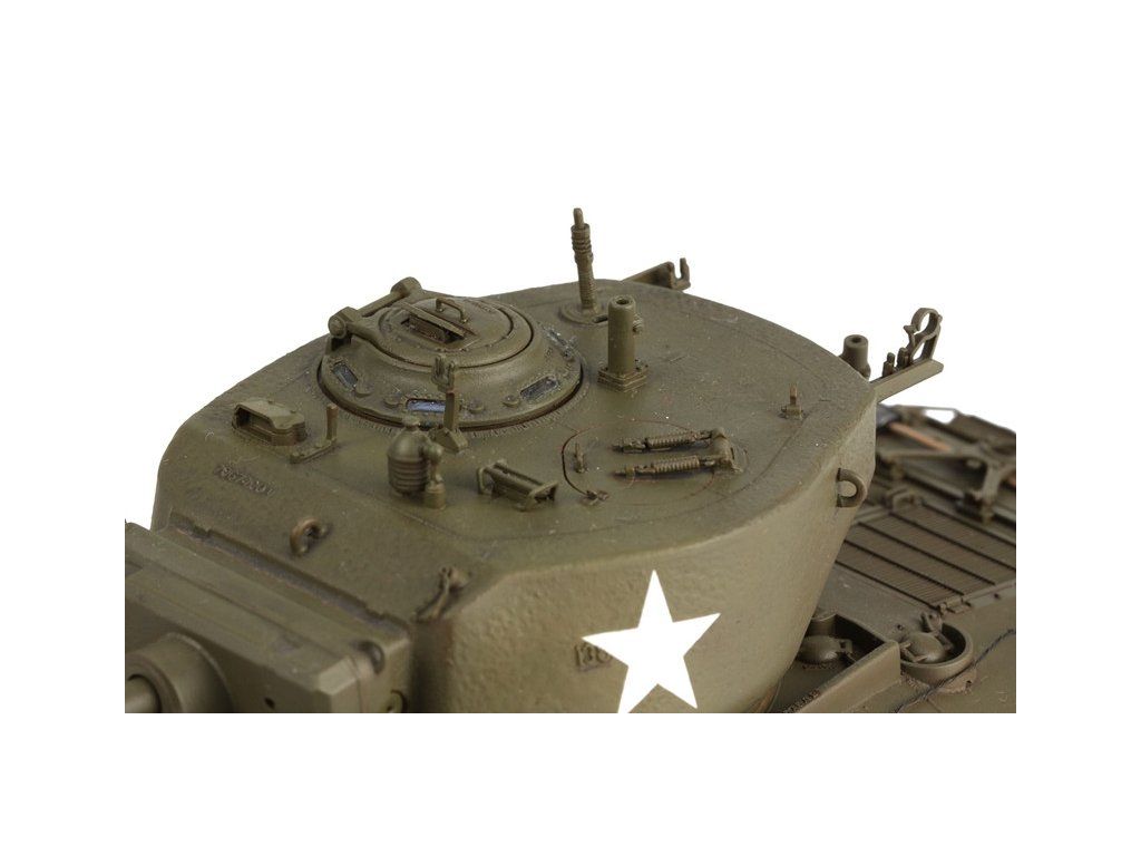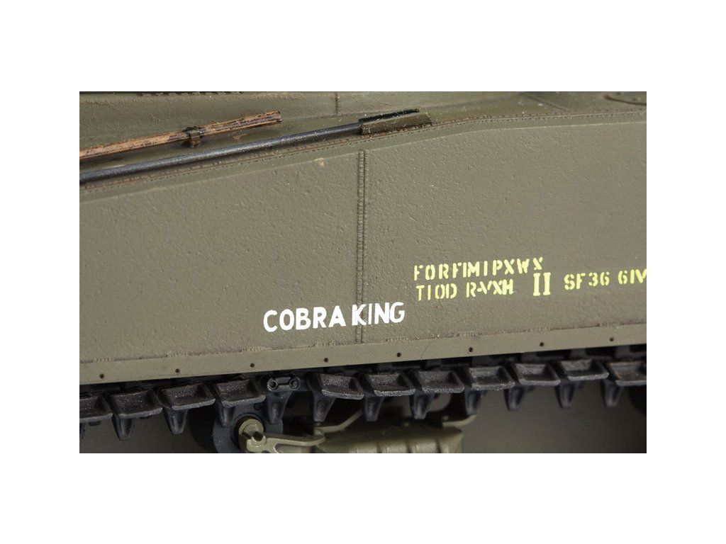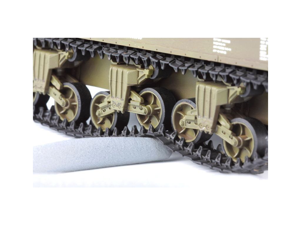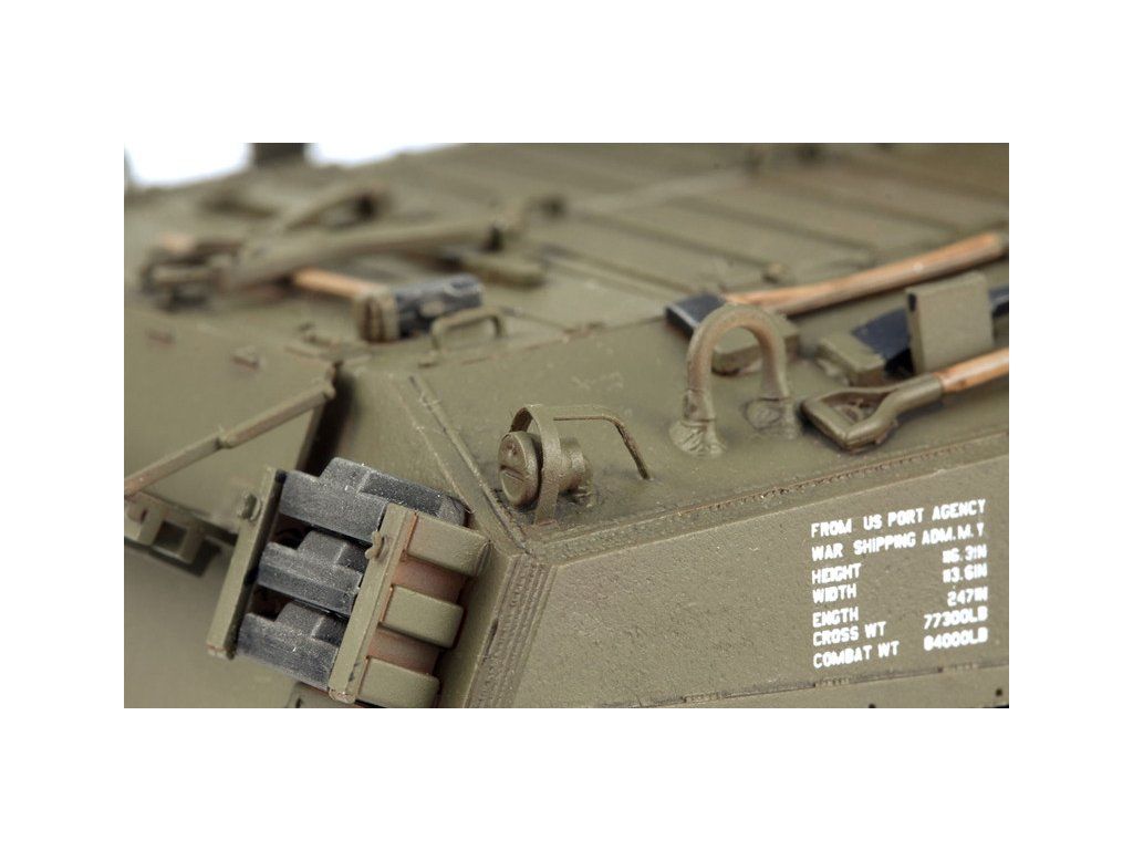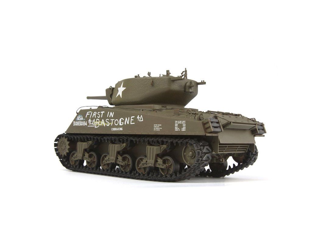 Stavebnice plastikového modelu známého amerického tanku Sherman ze 2. světové války, ve verzi vyzbrojené výkonným kanónem, který zvyšoval šance v boji proti nejlepším německým tankům.