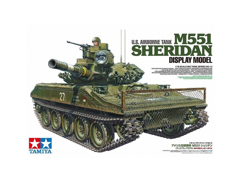 Tento veľký statický model v mierke 1/16 zobrazuje jedinečný americký Sheridan M551. Skutočný Sheridan sa začal vyvíjať už v roku 1959 a mal slúžiť vo veľkých konfliktoch, ako boli vojny vo Vietname a potom v Perzskom zálive. Bolo to ľahké, vzduchom prepraviteľné vozidlo, ktoré prispelo k mobilite amerických síl, keďže Amerika prevzala po rokoch druhej svetovej vojny dôležitú globálnu bezpečnostnú úlohu. Do výzbroje americkej armády bol zavedený v roku 1966 a zo služby bol stiahnutý v roku 1996.