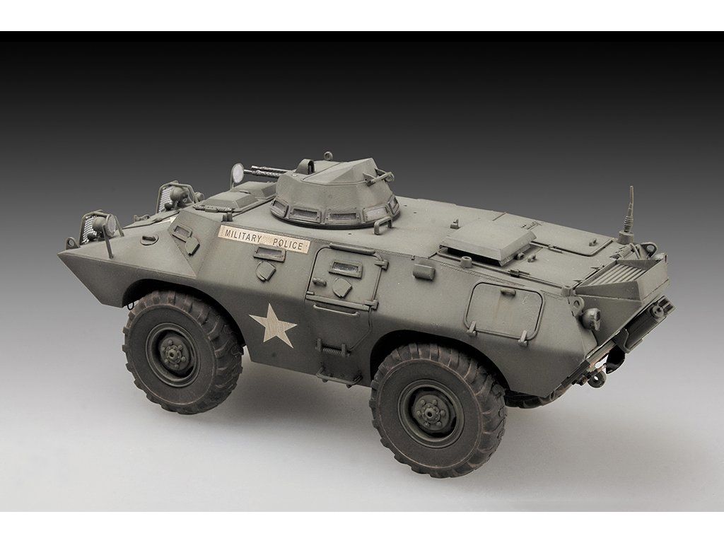 Stavebnica plastového modelu amerického prieskumného a eskortného obrneného vozidla z obdobia vojny vo Vietname.