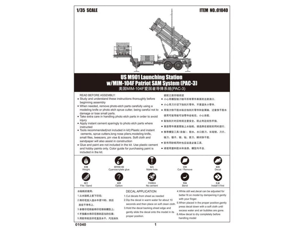 US M901 Launch. Stat. w/MIM-104F Patriot SAM System (PAC-3) Trumpeter 1040