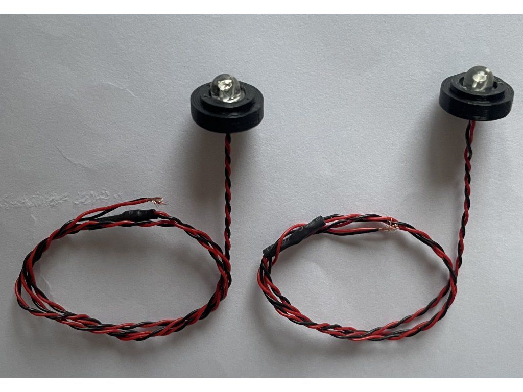 Určeno pro osazení do majáku SCANIA 770S 8x4 stavebnice TAMIYA 56371. Obsahuje 1 pár majáků v objímce na kterou pasují originální kryty ze stavebnice. (Oranžové kryty tedy nejsou součástí dodávky).