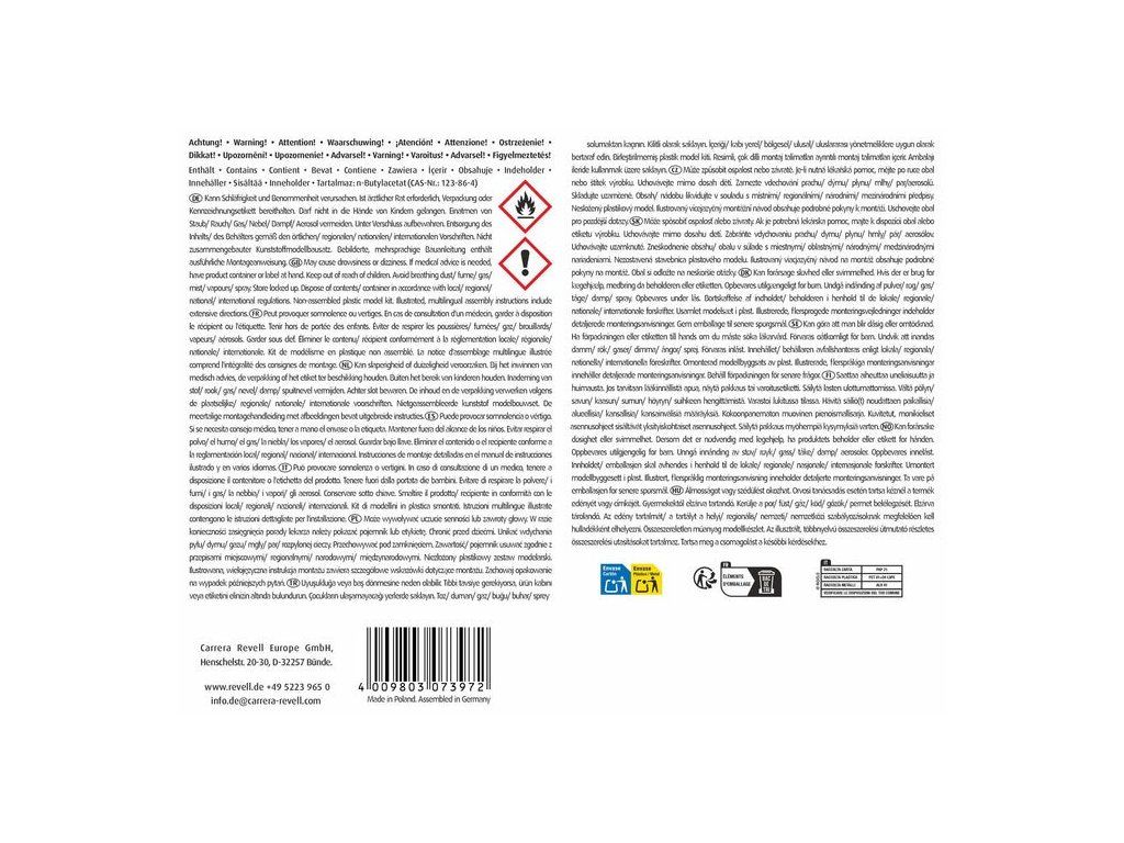 Plastiková stavebnice, obsahuje nesestavené a nenabarvené díly. V některých typech stavebnic jsou navíc kovové, PUR a gumové díly. Pozor, obsahuje malé díly, uchovávejte mimo dosah dětí do 3 let. Nevhodné pro děti do 14 let.