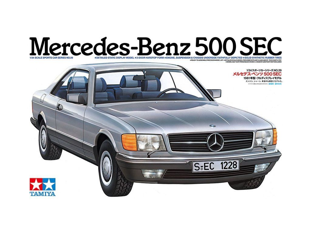 Stavebnice plastikového modelu luxusního kupé z 80. let německé značky Mercedes-Benz.