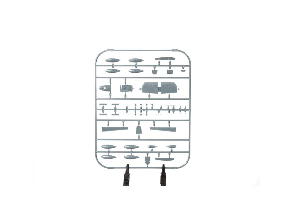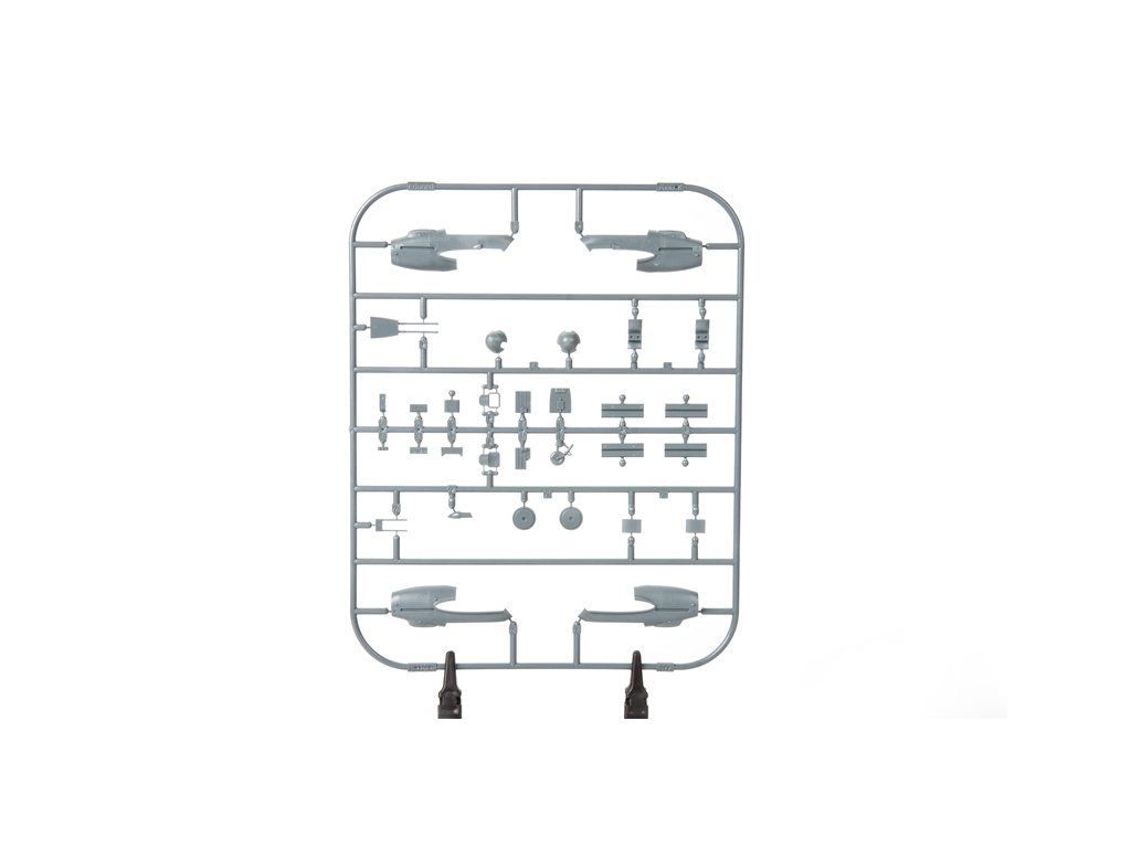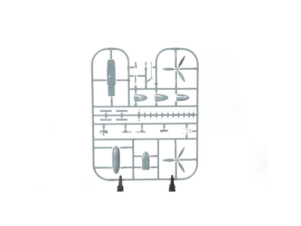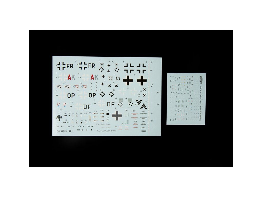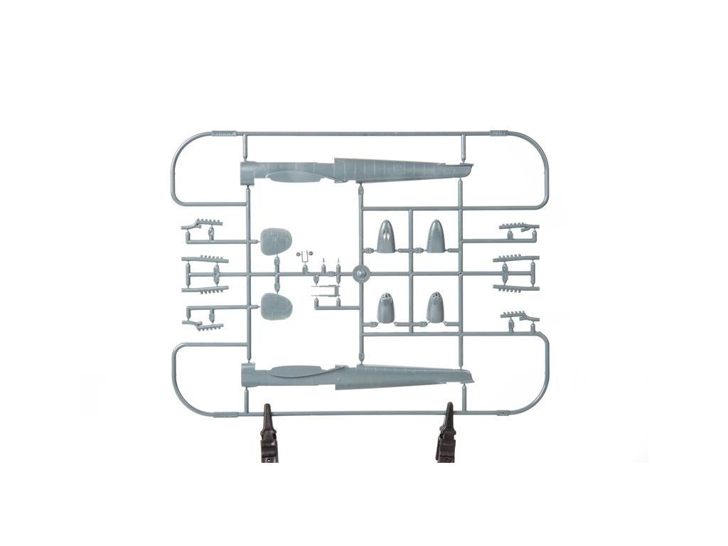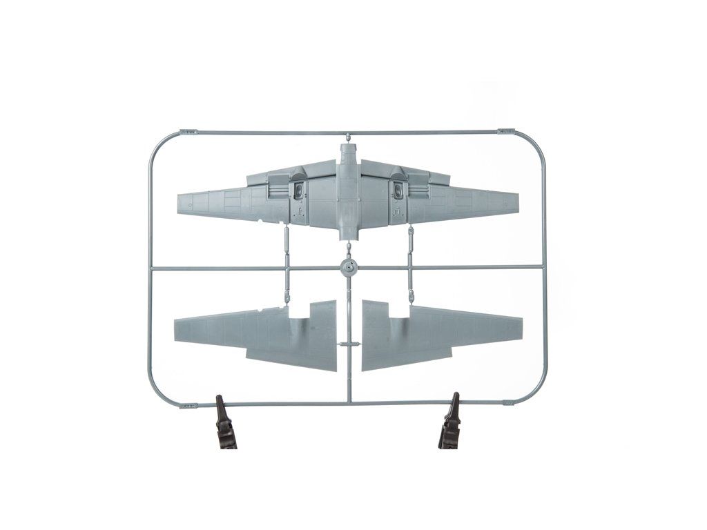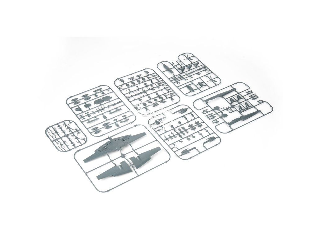 Stavebnice plastikového modelu německého dvoumotorového stíhacího letadla ze 2. světové války. Stavebnice obsahuje také kovové fotoleptané díly.