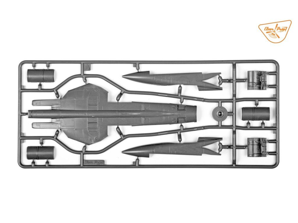 Stavebnice plastikového modelu sovětského stíhacího letadla ze studené války.