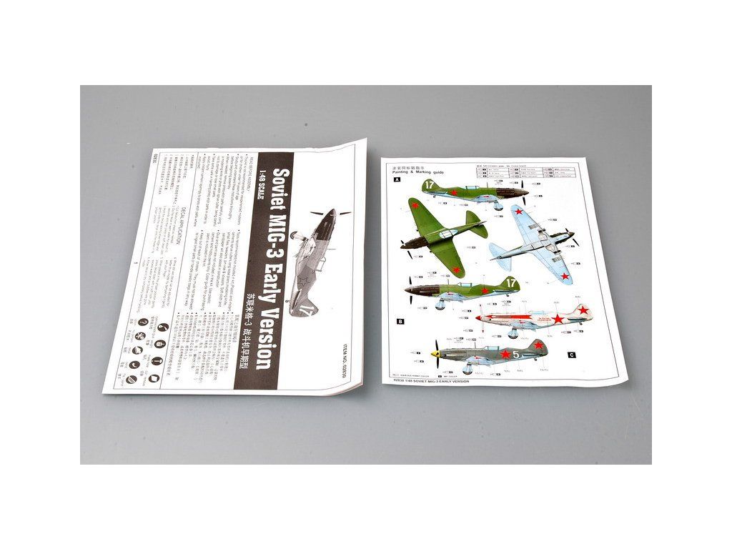 Stavebnice plastikového modelu sovětského stíhacího letadla z 2. světové války. MiG-3 byl výsledkem programu na vylepšení MiG-1. MiG-3 byl objednán do výroby v Prosinci 1940. První dodávky nové stíhačky frontovým stíhacím letkám se uskutečnily v dubnu 1941. MiG-3 zůstal v sériové výrobě až do posledního prosincového týdne 1941, kdy byla přerušena pro nedostupnost motoru AM. Celková výroba MiG-3 činila asi 3120 letadel a během první poloviny roku 1942 bylo z dostupných částí vyrobeno dalších 50 kusů.