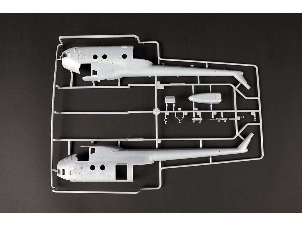 Stavebnice plastikového modelu sovětského vojenského vrtulníku z období studené války.