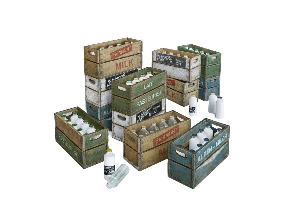 Plastová stavebnica fliaš na mlieko a prepraviek vhodná do diorám.