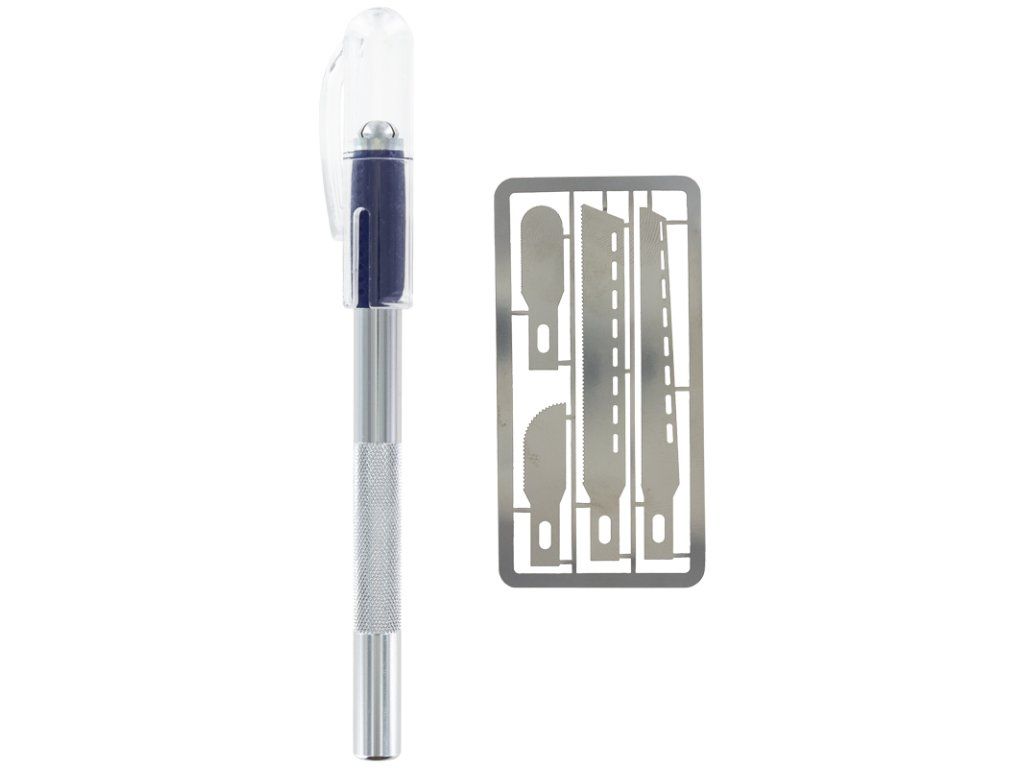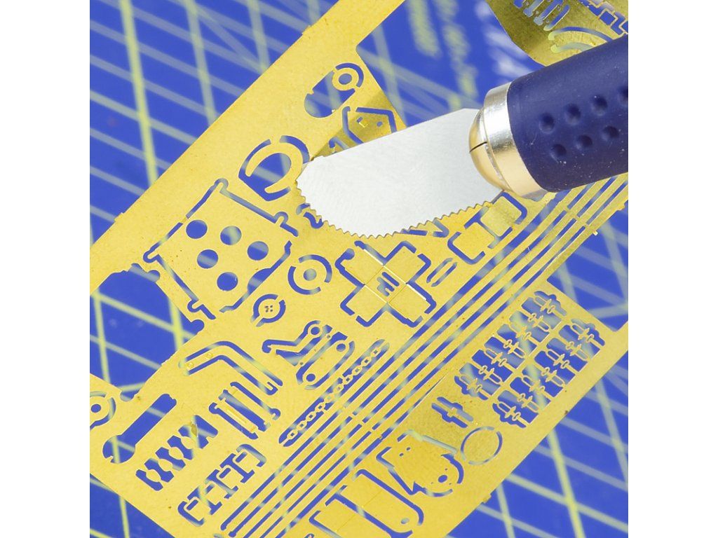 Malá modelářská pilka se 4 čepelemi.Ideální pro stavbu modelů a jiné úkoly.Měkká pohodlná rukojeť a snadné ovládání při řezání. Ideální pro fotoleptané díly, plasty a dřevo.