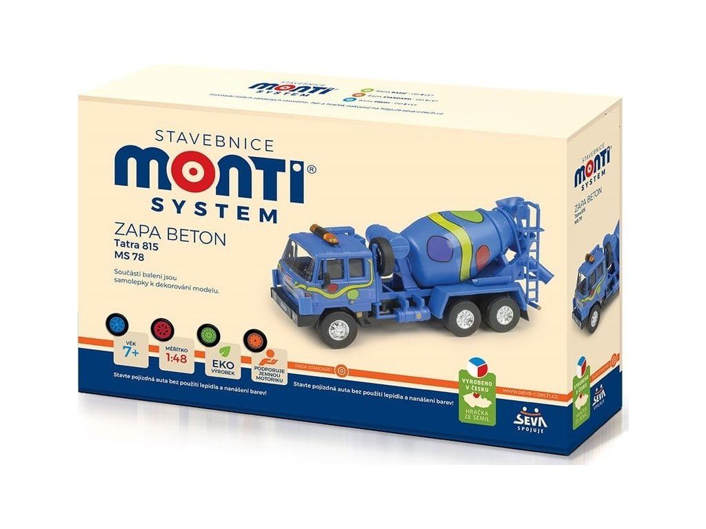 Monti system je série modelů aut. Stavebnice je dodávána jako výlisky, ze kterých se auto postaví a nalepí se na něj samolepky. Největší výhodou těchto stavebnic je, že pro sestavení modelu autíčka nepotřebujete žádné lepidlo ani barvy. Jednotlivé dílky jsou vyrobeny tak důmyslně, že s pomocí různých zacvakávacích zámků, úchytů a dalších pružných mechanismů sestavíte model bez jediné kapky lepidla. Vše do sebe jen zacvaknete nebo zasunete. Výsledkem je funkční model s úžasnými detaily, který je dokonalou replikou skutečné předlohy.