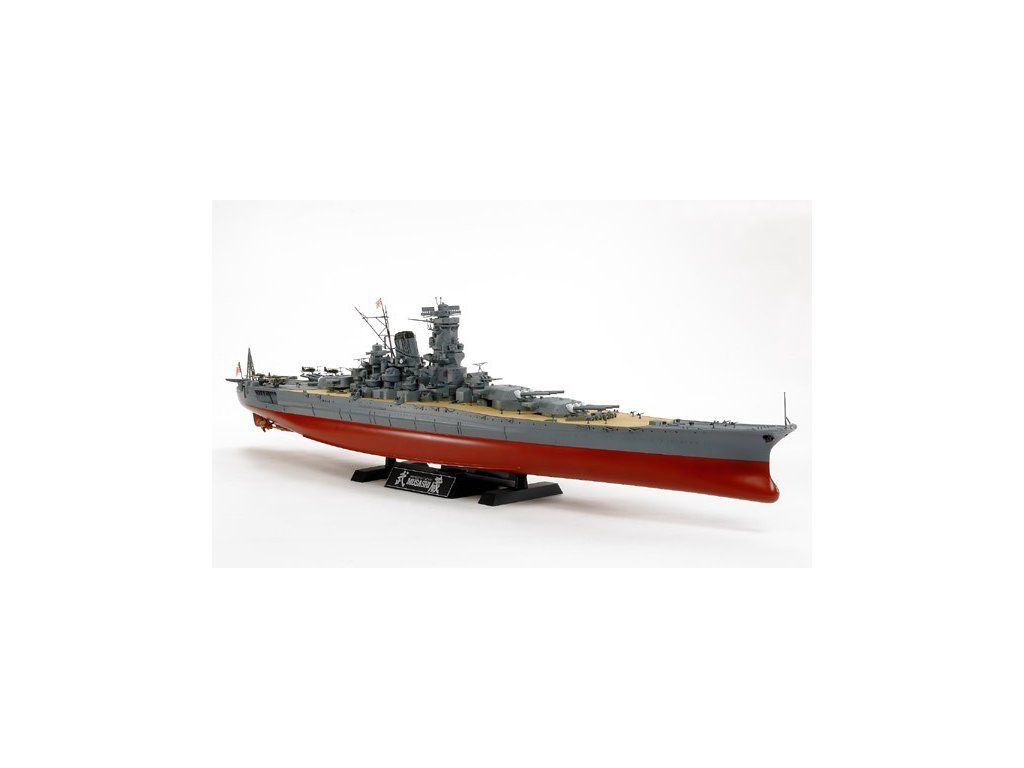 Stavebnica plastového modelu veľkej japonskej bitevnej lode z obdobia 2. svetovej vojny, ktorá patrila medzi najväčšie bitevné lode na svete.