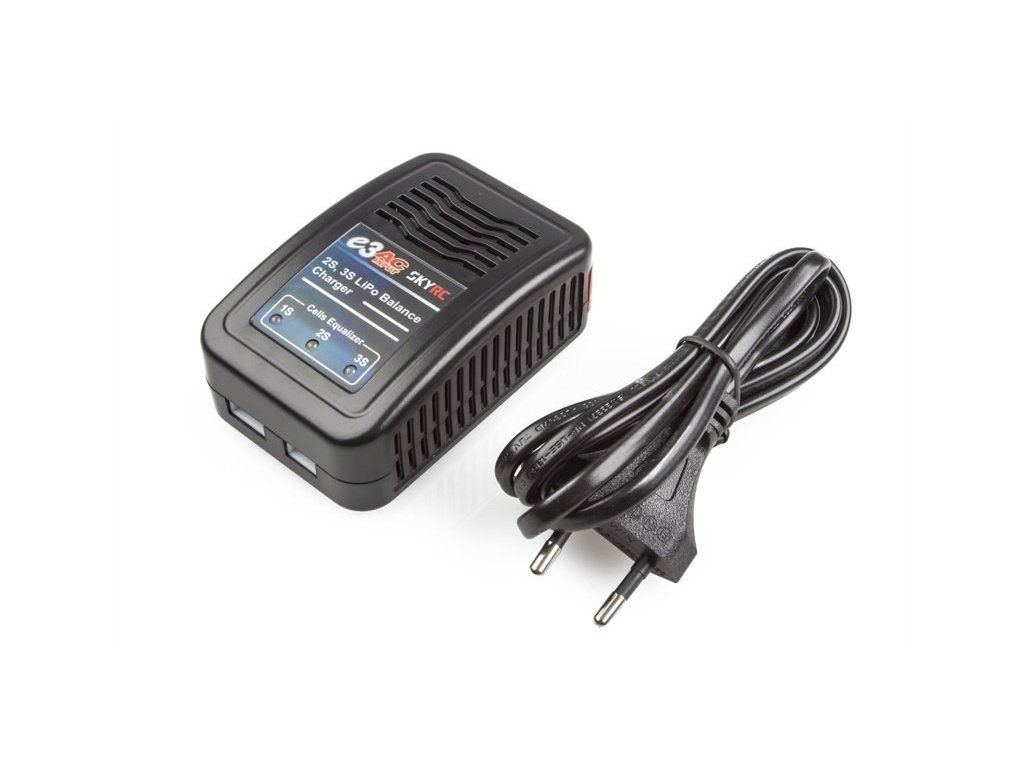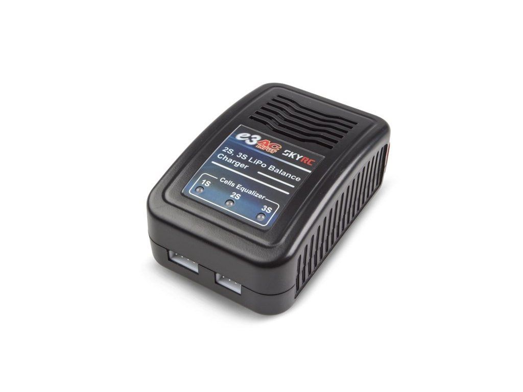 Nabíječ SKY RC e3 s vestavěným balancerem je velmi jednoduchý "krabičkový" nabíječ pro rekreační jezdce a letce se síťovým napájením pro nabíjení Li-poly akumulátorů. Je ideálním doplňkem "setových" stavebnic umožňující jednoduché nabíjení doma nebo výborným společníkem na cesty, kdy s sebou nechcete "tahat" velký, těžký a drahý nabíječ. Nabíjený akumulátor se připojuje k vestavěnému balanceru prostřednictvím servisního konektoru; nabíječ je opatřen dvěma zásuvkami (2s, 3s) pro konektory systému JST-XH. V jednu chvíli je možno nabíjet vždy jen jednu sadu - buď dvoučlánkovou, nebo tříčlánkovou.