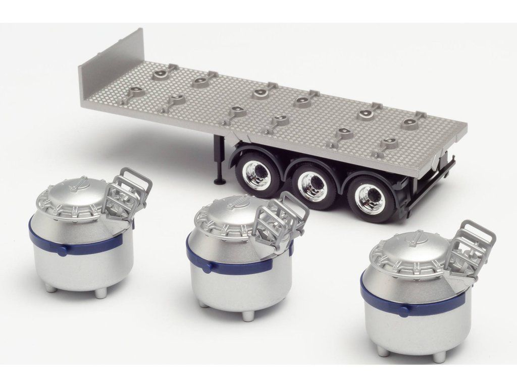 Trailer with 3 aluminum pots, silver 1/87 Herpa 076838-002