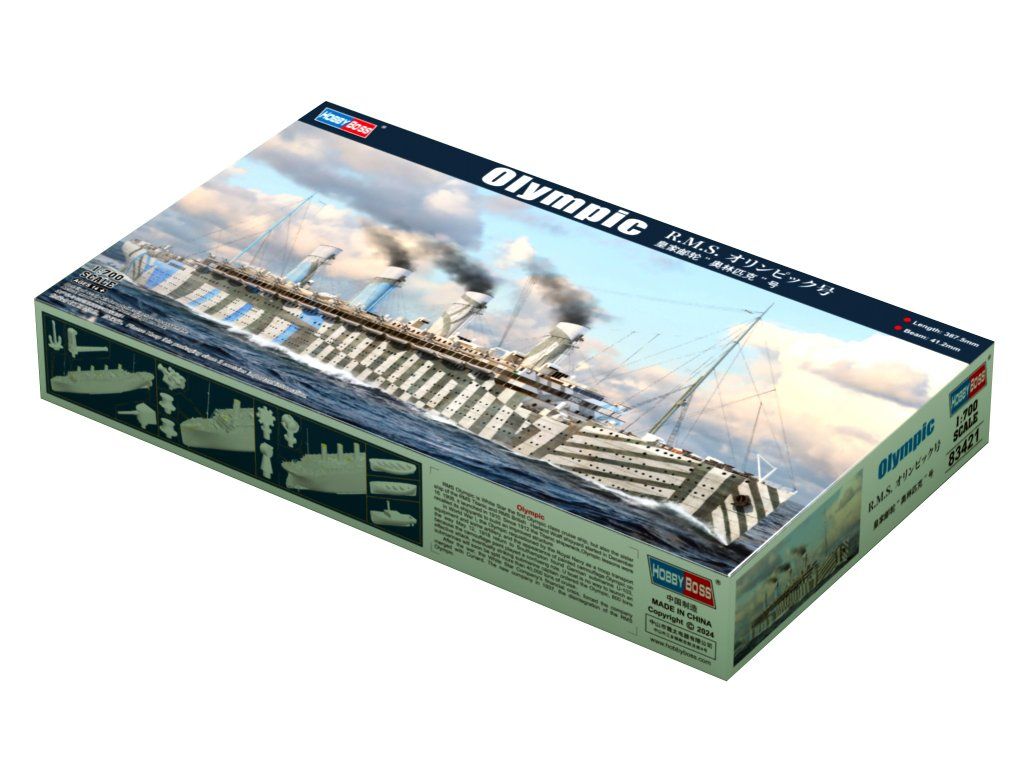 Stavebnice plastikového modelu prvního ze tří zaoceánských parníků třídy Olympic vlastněných společností White Star Line. Jeho sesterské lodě byly Titanic a Britannic.