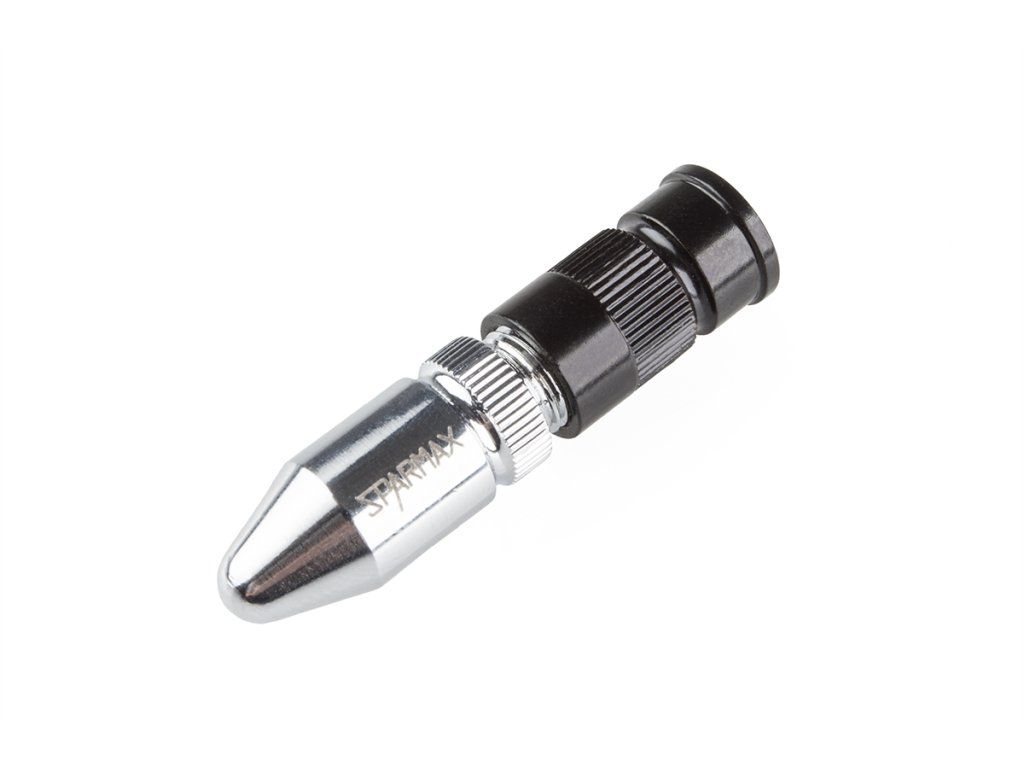 Velmi často se stává, že během procesu čištění airbrushu se tryska do těla pistole pomocí přiloženého klíče příliš utáhne. Tím se bohužel křehká tryska zlomí a v těle airburshu zůstane zlomený závit. Tento nástroj se čtyřstrannou jehlou pomůže při vyšroubování zlomeného závitu.