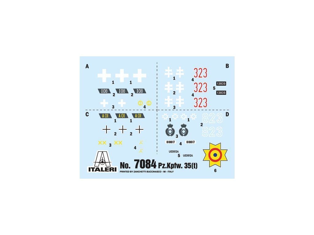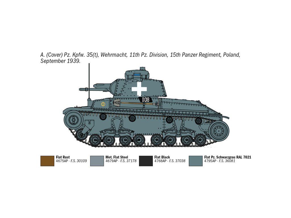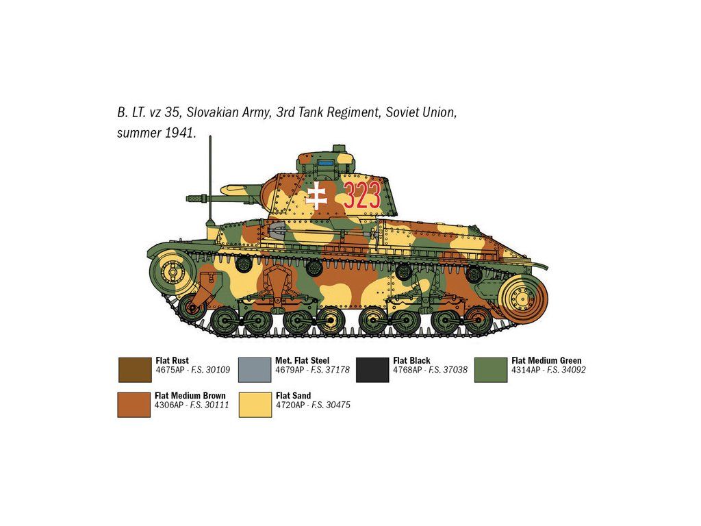 Stavebnice plastikového modelu československého lehkého tanku LT-35, který byl po rozpadu Československé republiky zařazen do služby ve Wehrmachtu pod německým kořistním označením Pz.Kpfw. 35(t). Písmeno t označovalo původ kořistní techniky Tschechisch.