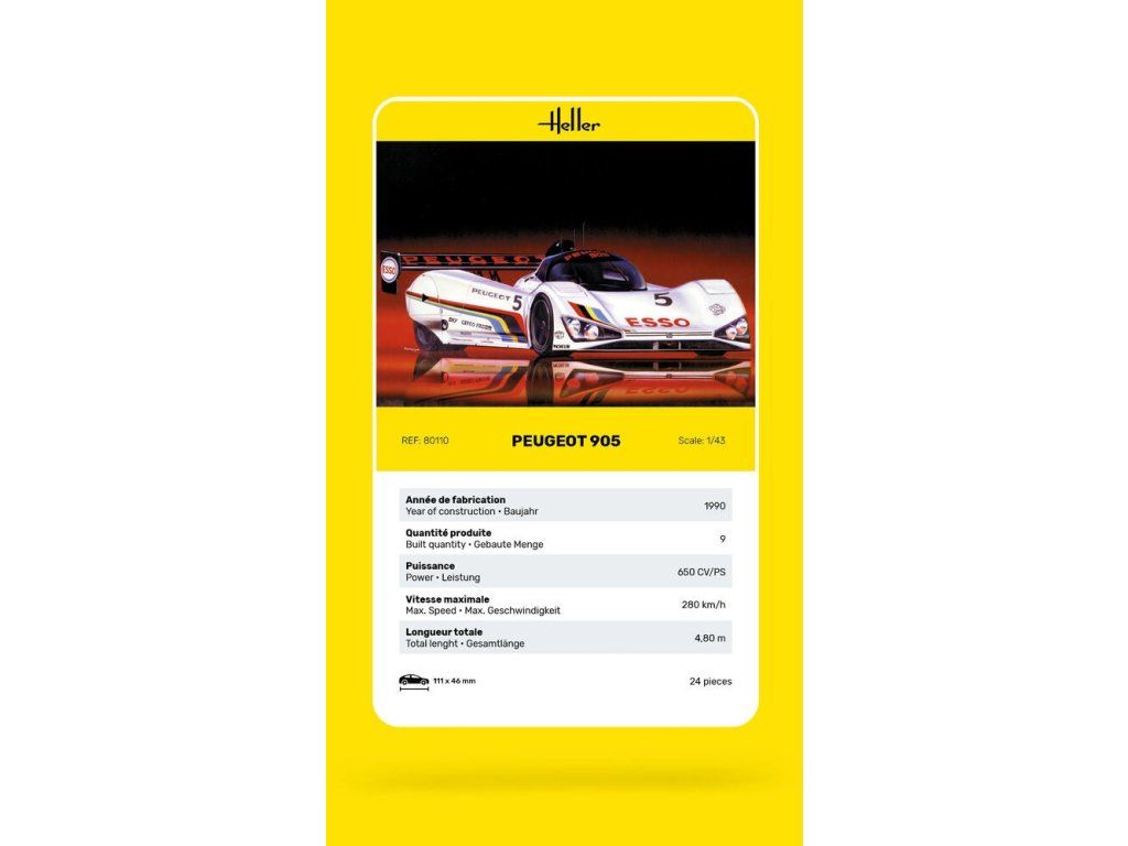 Stavebnice plastikového modelu závodního auta francouzské značky Peugeot, které se zúčastnilo 24 hodinových závodů Le Mans v roce 1991.
