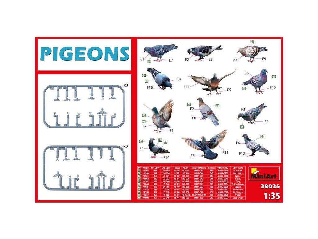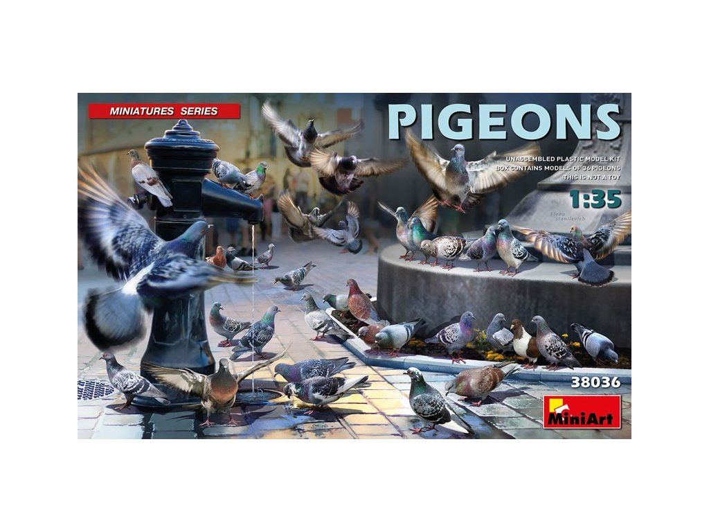Stavebnica plastového modelu figúrok holubov. Vhodné na oživenie diorámy.