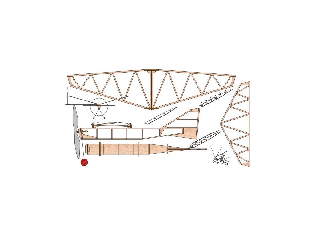 Stavebnice balzového modelu k pohonu gumovým svazkem. Vhodné pro začínající modeláře.