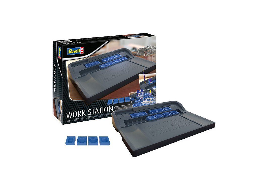 Pracovní stanice je konstruována tak, aby si modelář mohl pohodlně rozložit své nářadí, barvy a drobné díly tak, aby byly přehledně uspořádány a vždy po ruce.
