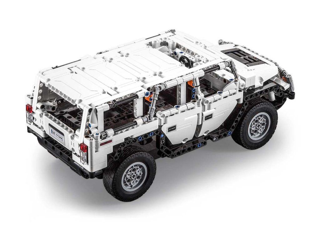 Stavebnica diaľkovo ovládaného modelu terénneho auta z kociek. Kompatibilná so stavebnicou Lego Technic. Pomocou diaľkového ovládača a aplikácie vo vašom smartfóne môžete hotový model ovládať dopredu a dozadu, zatáčať doľava/doprava a ovládať predné/zadné svetlá.