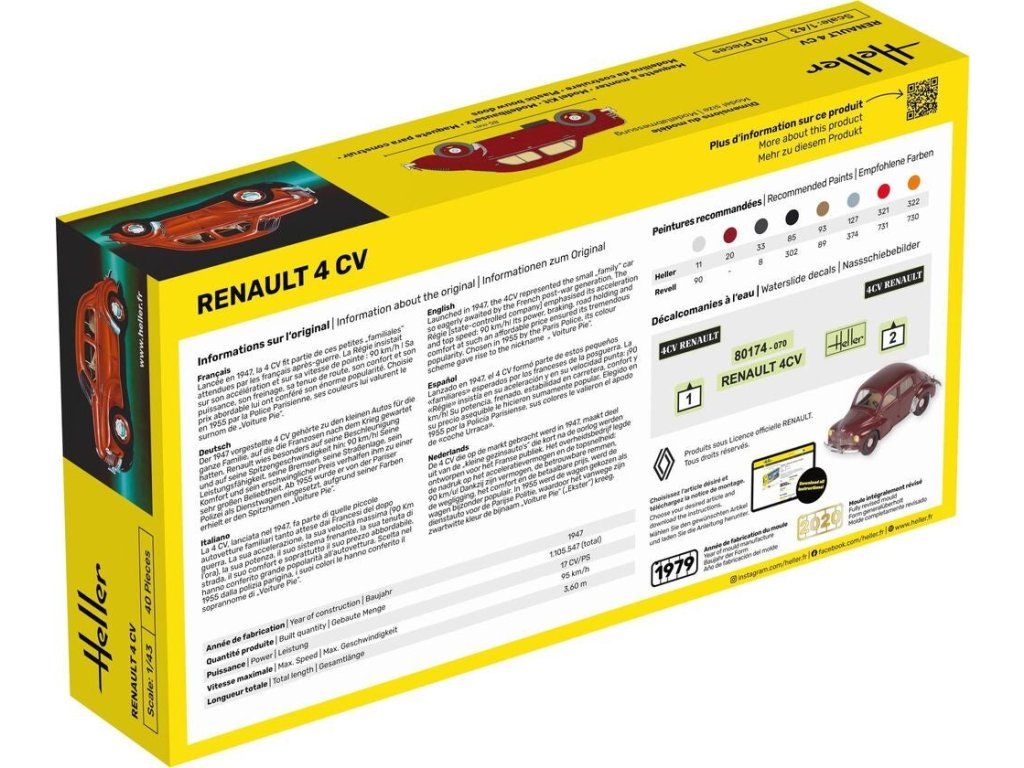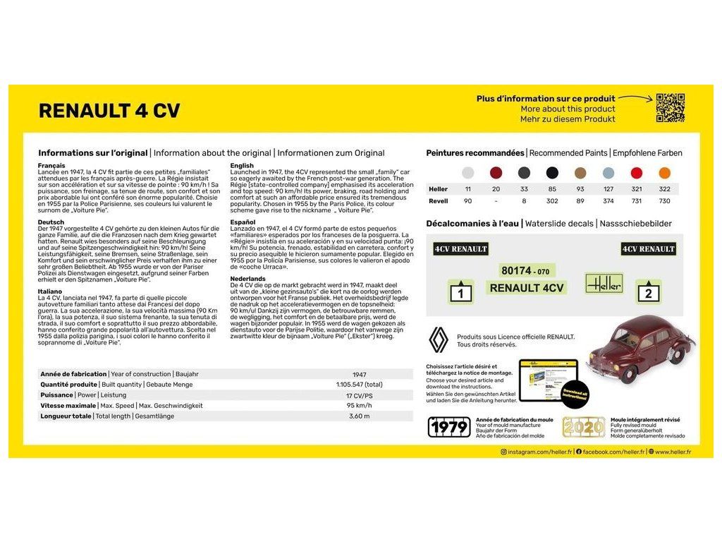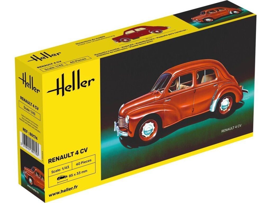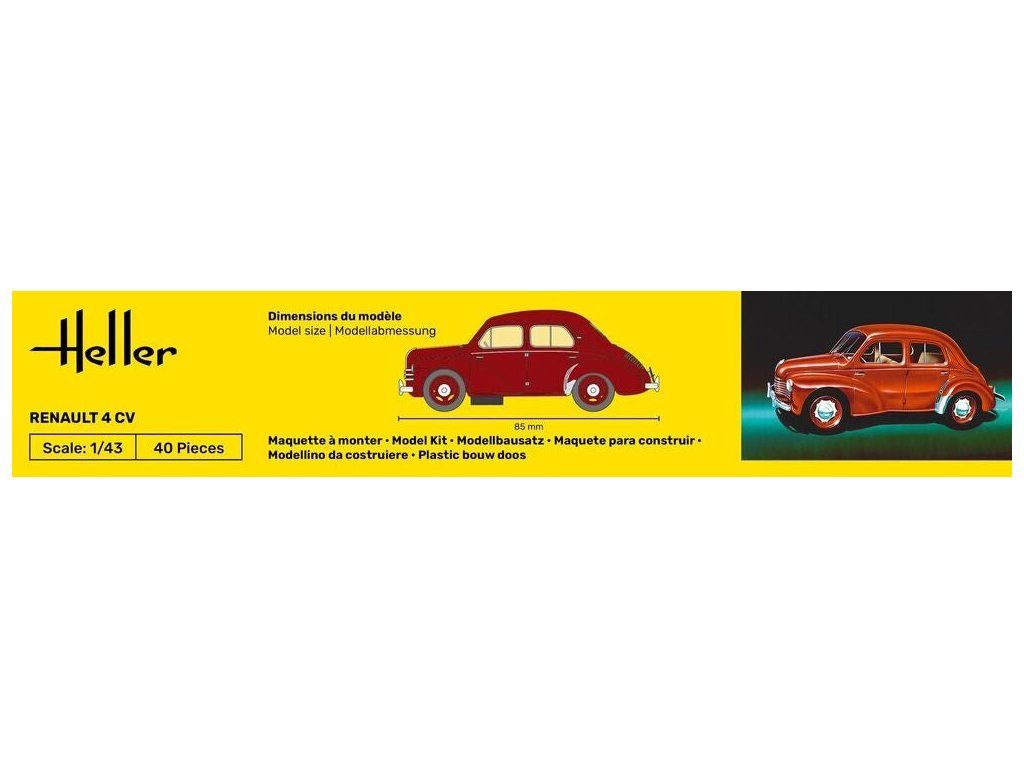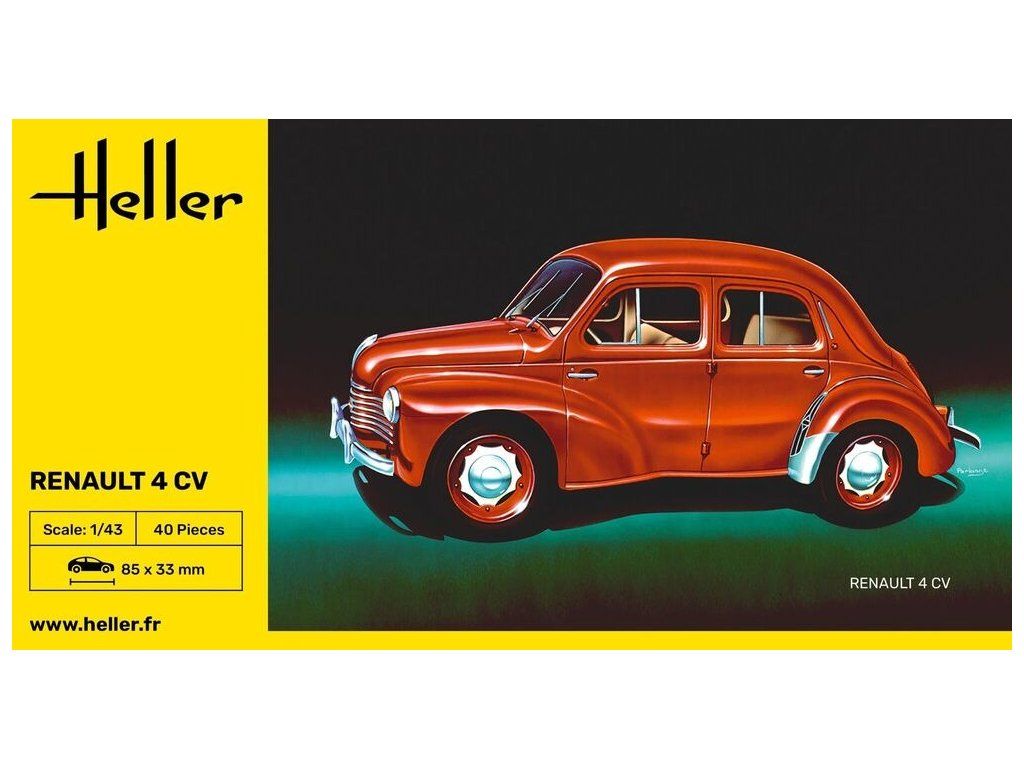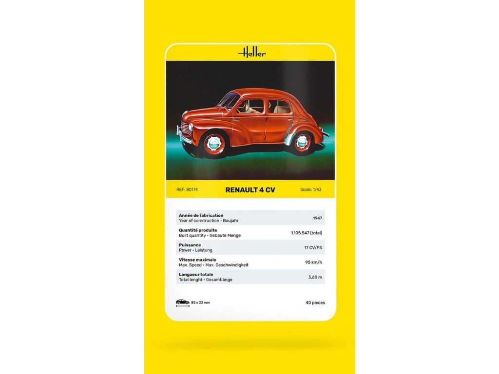 Stavebnice plastikového modelu osobního automobilu z druhé poloviny 40. let vyráběného francouzskou automobilkou Renault.