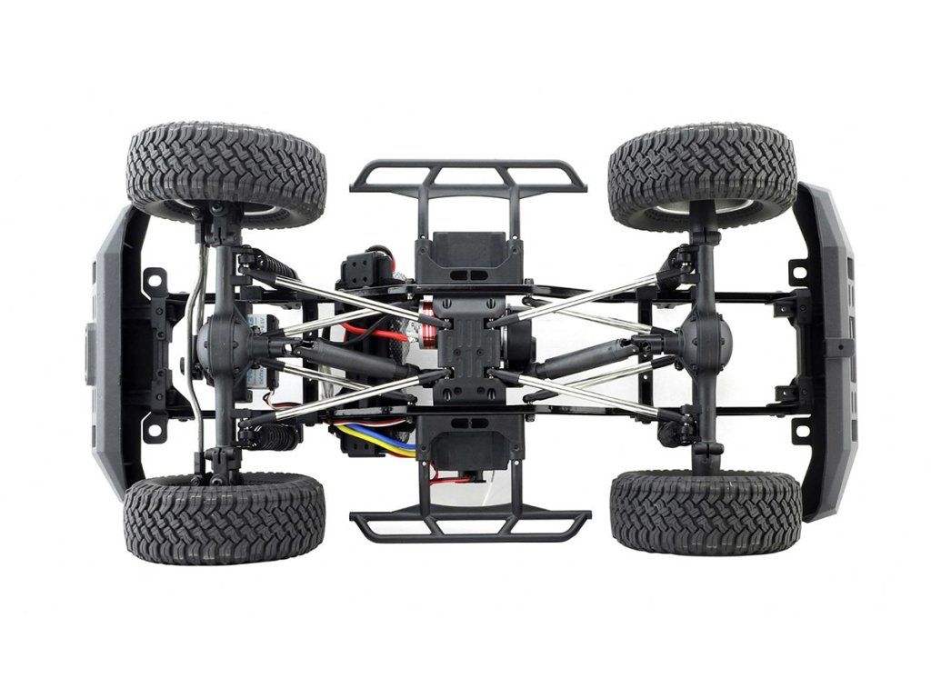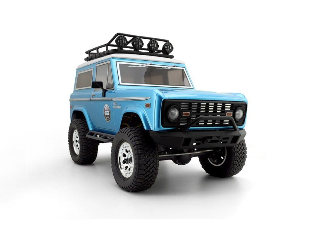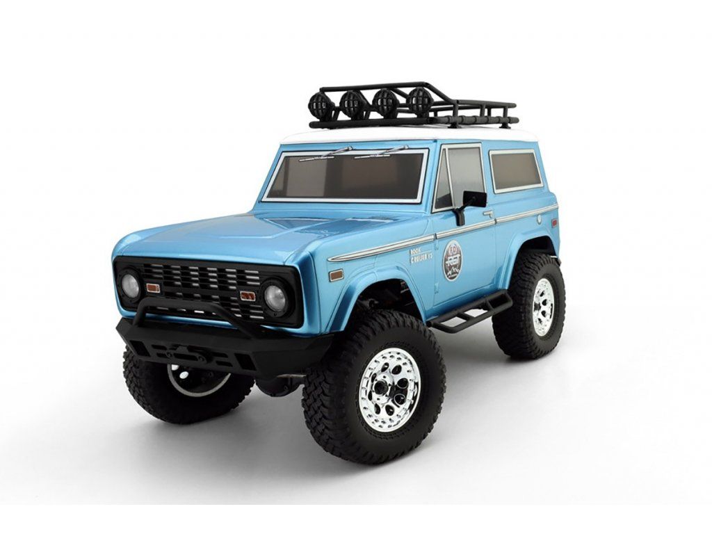 Kompletne zostavený RC crawler/expedičný špeciál s jednosmerným motorom, vodeodolnou jednotkou 3v1 (prijímač, regulátor, svetelný modul) a servom riadenia pre začiatočníkov. Sada obsahuje 2,4Ghz RC vysielač. Bez pohonného akumulátora a nabíjačky. Modrá karoséria s inteligentným systémom osvetlenia.
