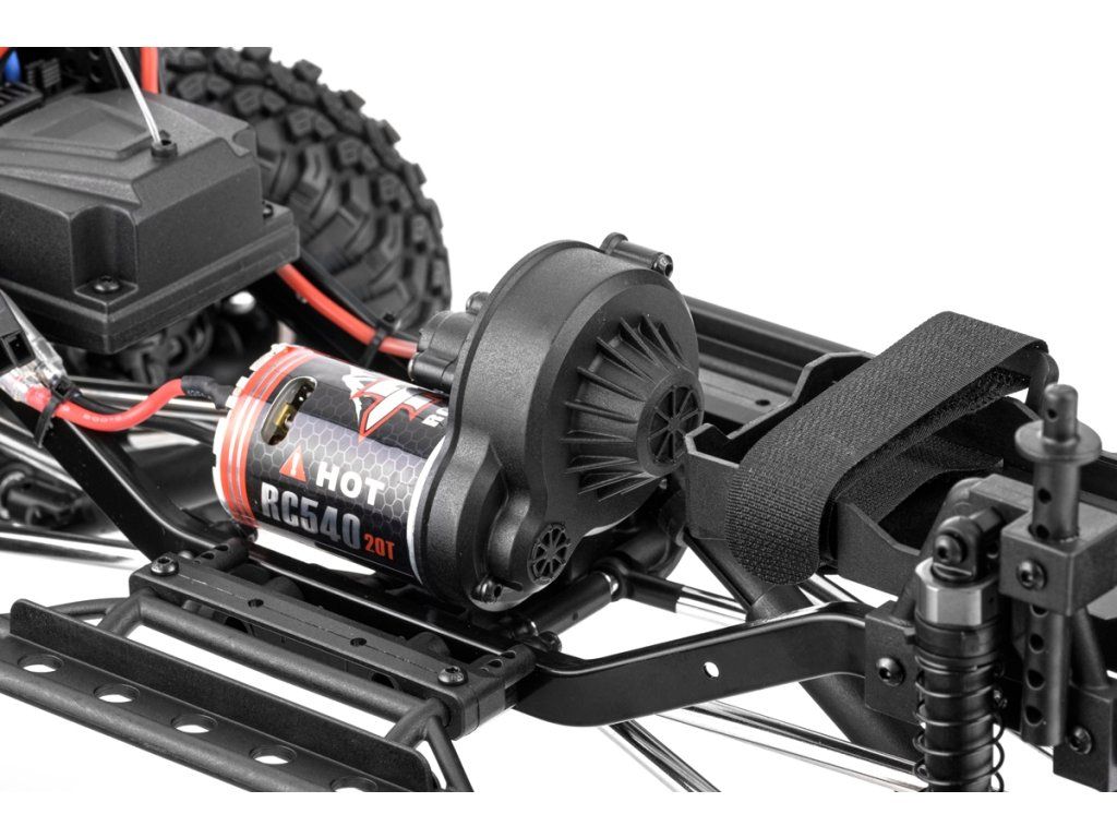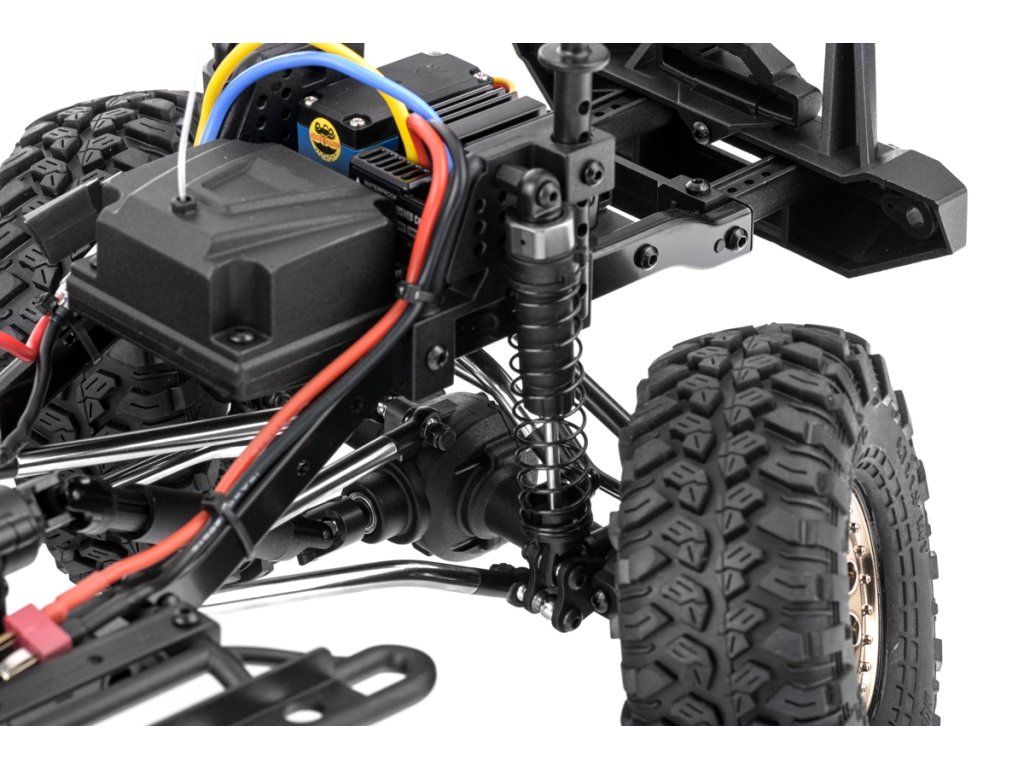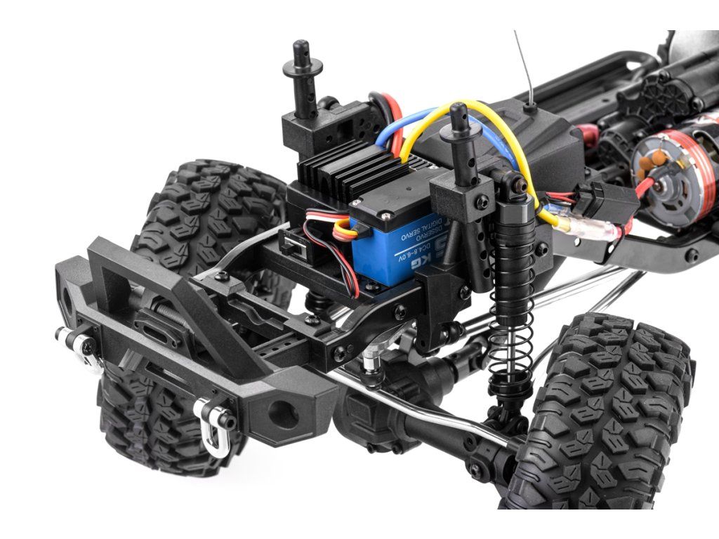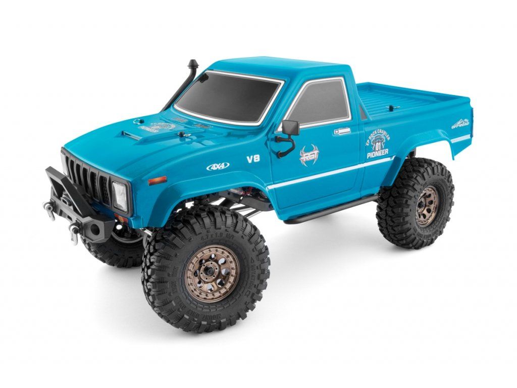 Kompletne zostavený RC crawler/expedičný špeciál s jednosmerným motorom, vodeodolným regulátorom a silným servom riadenia pre začiatočníkov. Sada obsahuje 2,4Ghz RC súpravu. Bez pohonného akumulátora a nabíjačky. Modrá karoséria R86200.