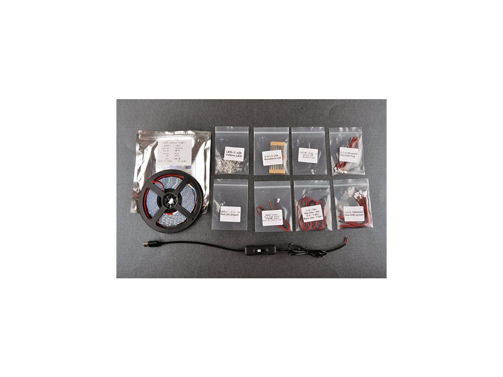 Stavebnice obsahuje také kovové díly a sadu LED vnitřního osvětlení.