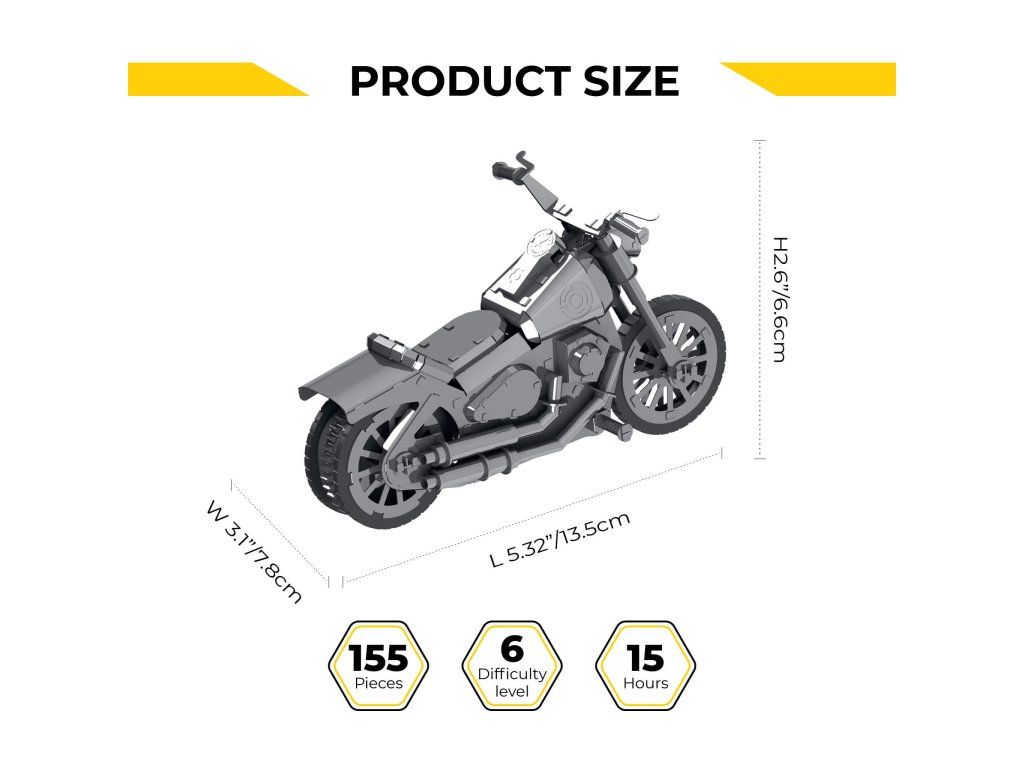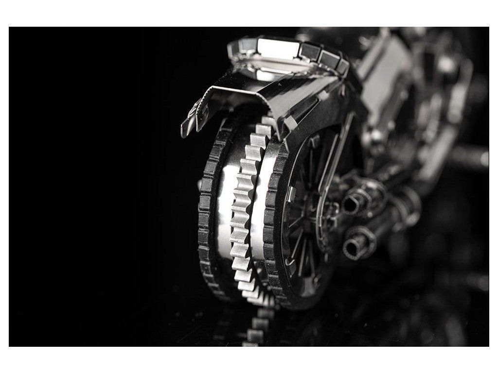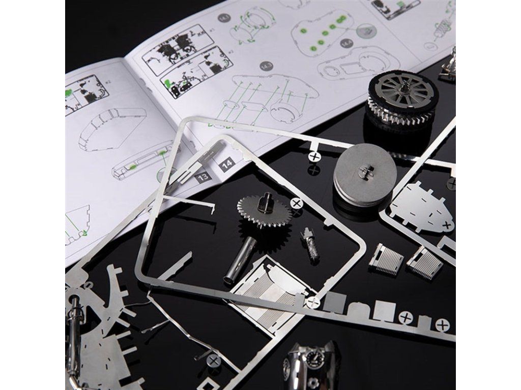 Stavebnice modelu z kovu. Vyrobeno z kvalitního leštěného ocelového plechu laserovým vypalováním a přesným obráběním. Vhodné pro mírně pokročilé a starší děti. Stavebnice obsahuje vyštipovací kleště, pilník, rukavice, čistící hadřík a sběratelské předměty jako odznak a nálepky.