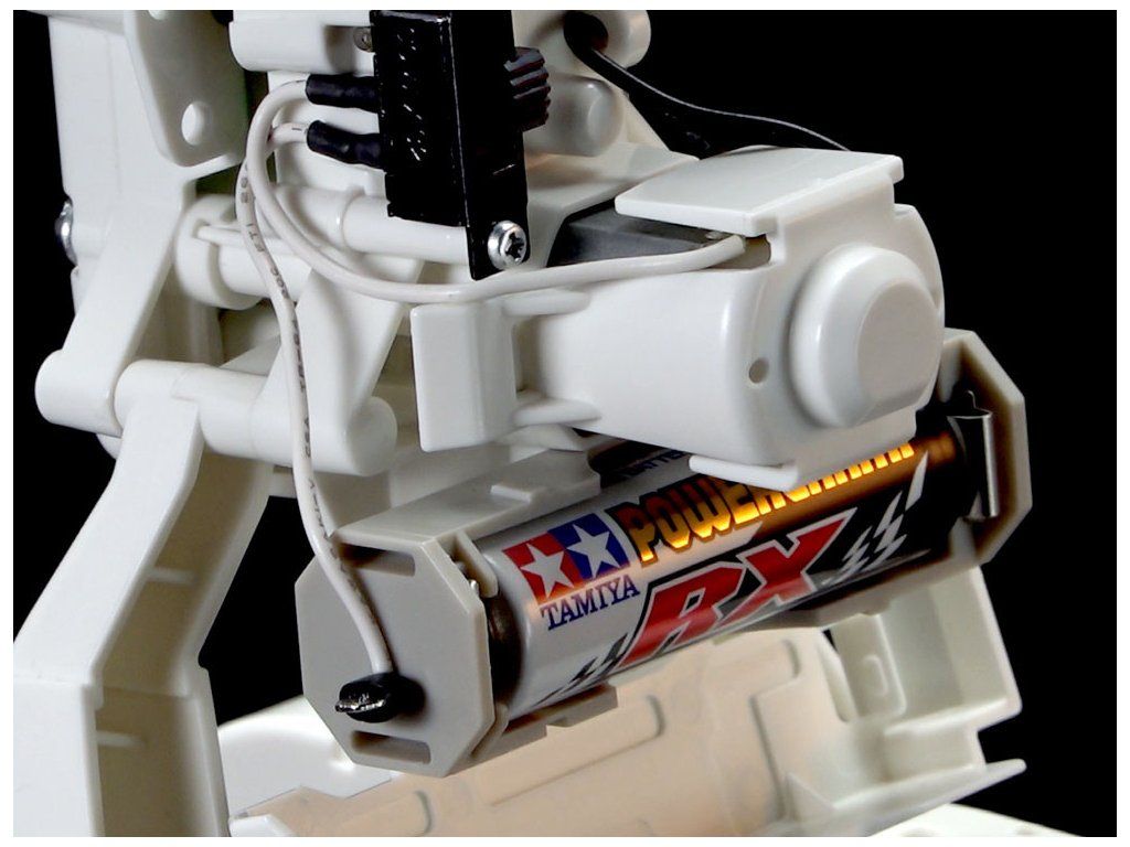 Robot sa pohybuje dopredu pomocou otvárania a zatvárania nôh, ktoré sú poháňané elektromotorm typu 130 (nutná externá 1x AA alkalická batéria).