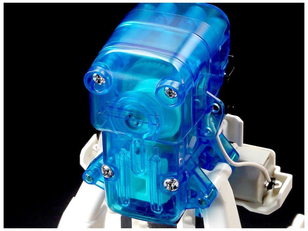 Vyrobené z bieleho kvalitného ABS plastu s obsahom modrej priesvitnej časti, ktorá odhaľuje to ako robot funguje. Na stavebnicu nie je nutné použitie lepidla, pretože jednotlivé diely sa k sebe montujú skrutkami.