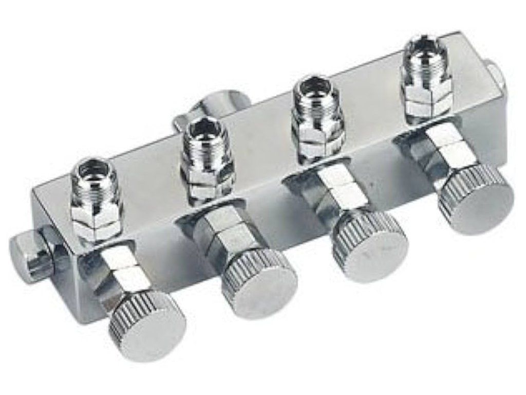 Rozbočovací blok BD-13-4 slouží pro připojení až 4 stříkacích pistolí k jednomu kompresoru nebo centrálnímu rozvodu tlakového vzduchu (profesionální grafická studia). Vstupní závit rozvodu je G1/4". Výstupy mají závit G1/8" běžně používaný na hadicích Royalmax, ale je rovněž použitelná pro hadice kterékoli značky s koncovkami G1/8". Každý výstup lze samostatně uzavřít pomocí vlastního ventilu.