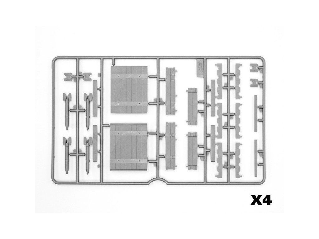 Stavebnica plastového modelu muničných bední s raketami rs-132 pre legendárny sovietsky raketomet Kaťiša z obdobia 2. svetovej vojny.